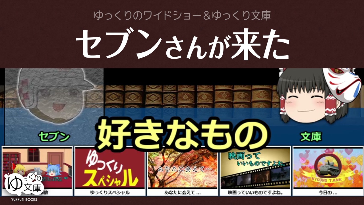 <span style="color: red;"><strong>085x ゆっくりしていってね!!!──</strong></span><br>なんやかんやあって、「ゆっくりのワイドショー」のセブンさんが文庫サーバの、短期滞在ゲストになった。なんやかんやあって、そのままメンバーになってしまった。世の中、なんやかんやあるものだ。<br><br><strong>YouTubeに第2版:<a href="https://youtu.be/4CbUJShUYk0" target="_blank" rel="noopener nofollow">https://youtu.be/4CbUJShUYk0</a></strong><br><br>ゆっくりのワイドショー<br><a href="https://www.nicovideo.jp/mylist/45200880" target="_blank" rel="noopener">mylist/45200880</a><br><br>同時公開の第30回<br><a href="https://www.nicovideo.jp/watch/sm36093685" class="watch">sm36093685</a> Aパート<br><a href="https://www.nicovideo.jp/watch/sm36093728" class="watch">sm36093728</a> Bパート<br><br><a href="https://www.nicovideo.jp/user/12522255" target="_blank" rel="noopener">user/12522255</a> ユズさん<br><a href="https://www.nicovideo.jp/mylist/55509150" target="_blank" rel="noopener">mylist/55509150</a> 黒虎(ウルスラ)さん<br><a href="https://www.nicovideo.jp/series/21249" target="_blank" rel="noopener">series/21249</a> 正井舞さん<br><a href="https://www.nicovideo.jp/mylist/65639416" target="_blank" rel="noopener">mylist/65639416</a> ヤタさん<br><a href="https://www.nicovideo.jp/user/88185094" target="_blank" rel="noopener">user/88185094</a> 煉瓦さん<br><a href="https://www.nicovideo.jp/mylist/65749397" target="_blank" rel="noopener">mylist/65749397</a> めれんげさん<br><a href="https://www.nicovideo.jp/mylist/63814935" target="_blank" rel="noopener">mylist/63814935</a> スケキヨさん<br><a href="https://www.nicovideo.jp/mylist/65488033" target="_blank" rel="noopener">mylist/65488033</a> 筋之助さん<br><a href="https://www.nicovideo.jp/mylist/66742660" target="_blank" rel="noopener">mylist/66742660</a> にゅんひさん<br><a href="https://www.nicovideo.jp/mylist/54896620" target="_blank" rel="noopener">mylist/54896620</a> ドランク狸さん<br><a href="https://www.nicovideo.jp/mylist/66248154" target="_blank" rel="noopener">mylist/66248154</a> モカ豆さん<br><br>●座談会/文庫サーバ<br><a href="https://www.nicovideo.jp/watch/sm34949914" class="watch">sm34949914</a> 【文庫】座談会:序章<br><a href="https://www.nicovideo.jp/watch/sm34957957" class="watch">sm34957957</a> 【スケキヨ】座談会:本編<br><a href="https://www.nicovideo.jp/watch/sm34987146" class="watch">sm34987146</a> 【文庫】座談会:打ち上げ<br><a href="https://www.nicovideo.jp/watch/sm34993365" class="watch">sm34993365</a> 【みょこすけ】 ヴァリトゥード編<br><a href="https://www.nicovideo.jp/watch/sm35785040" class="watch">sm35785040</a> 文庫サーバの話<br><a href="https://www.nicovideo.jp/watch/sm36092371" class="watch">sm36092371</a> ゆっワイのセブンさん<br><br>●ゆっくり文庫について<br>全部:<a href="https://www.nicovideo.jp/mylist/74874627" target="_blank" rel="noopener">mylist/74874627</a><br>近況:<a href="https://twitter.com/trynext" target="_blank" rel="noopener nofollow">https://twitter.com/trynext</a><br><br>