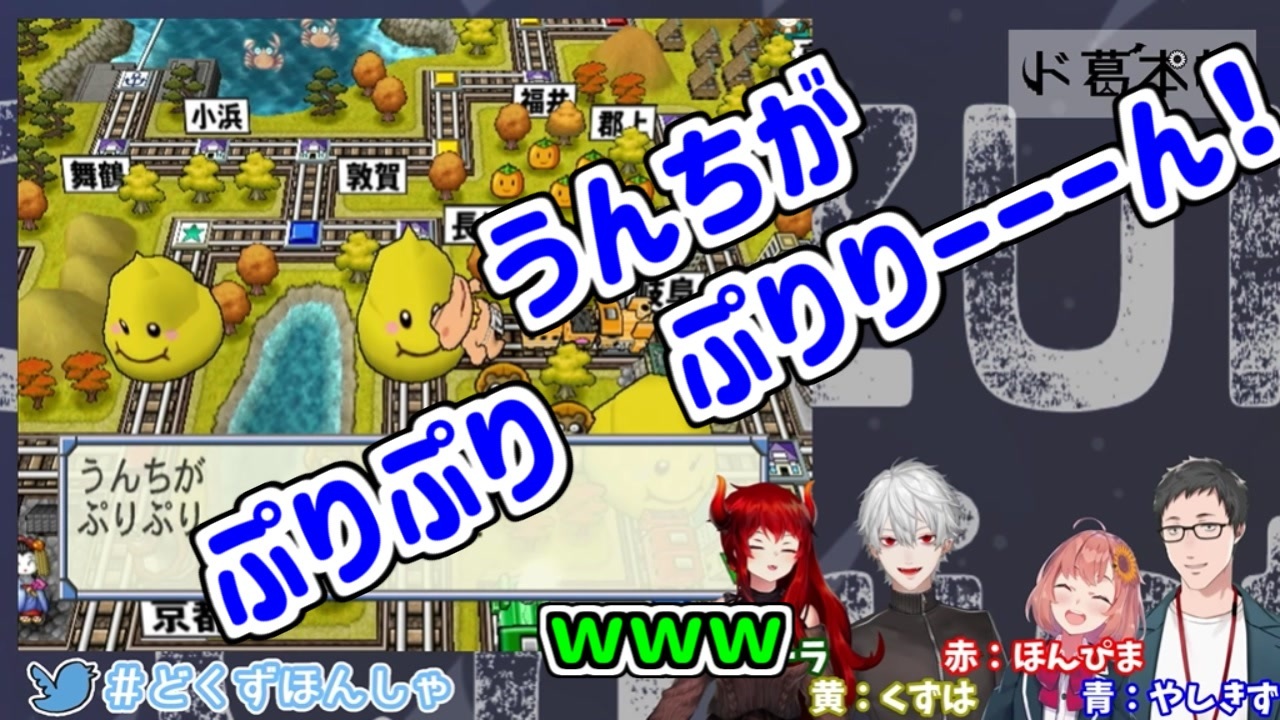 うんち!<br>◆アーカイブ:<br><strong>【</strong><strong>#どくずほんしゃ</strong><strong>】桃鉄ガチバトルで四人日本列島一周編【にじさんじ ドーラ/葛葉/本間ひまわり/社築】</strong><br>(<a href="https://youtu.be/uVwAbgjIpO0" target="_blank" rel="noopener nofollow">https://youtu.be/uVwAbgjIpO0</a> )<br><br><span style="color: #000000; font-size: 14px;">▼ドーラ様▼<br>@___Dola</span><br><span style="color: #006699; font-size: 14px;"><a href="https://www.youtube.com/channel/UC53UDnhAAYwvNO7j_2Ju1cQ" target="_blank" rel="noopener nofollow">https://www.youtube.com/channel/UC53UDnhAAYwvNO7j_2Ju1cQ</a></span><br><span style="color: #000000; font-size: 14px;">▼葛葉さん▼<br>@Vamp_Kuzu</span><br><span style="color: #006699; font-size: 14px;"><a href="https://www.youtube.com/channel/UCSFCh5NL4qXrAy9u-u2lX3g" target="_blank" rel="noopener nofollow">https://www.youtube.com/channel/UCSFCh5NL4qXrAy9u-u2lX3g</a></span><br><span style="color: #000000; font-size: 14px;">▼本間ひまわりさん▼<br>@honmahimawari</span><br><span style="color: #006699; font-size: 14px;"><a href="https://www.youtube.com/channel/UC0g1AE0DOjBYnLhkgoRWN1w" target="_blank" rel="noopener nofollow">https://www.youtube.com/channel/UC0g1AE0DOjBYnLhkgoRWN1w</a></span><br><span style="color: #000000; font-size: 14px;">▼社築さん▼<br>@846kizuQ</span><br><span style="color: #006699; font-size: 14px;"><a href="https://www.youtube.com/channel/UCKMYISTJAQ8xTplUPHiABlA" target="_blank" rel="noopener nofollow">https://www.youtube.com/channel/UCKMYISTJAQ8xTplUPHiABlA</a></span><br /><br>◆他作成動画:<a href="https://www.nicovideo.jp/mylist/62685940" target="_blank" rel="noopener">mylist/62685940</a><br>