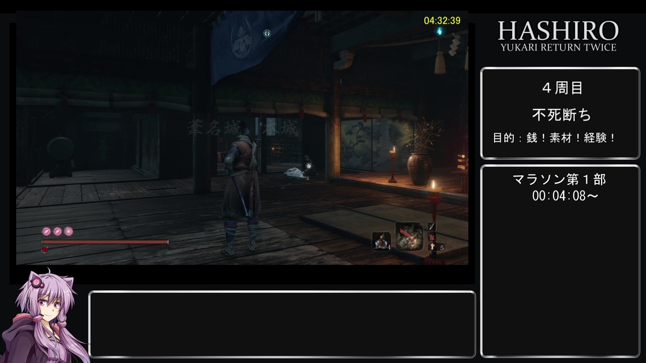 本動画は『SEKIRO - SHADOWS DIE TWICE -』のトロコンRTAとなります。<br><br>前回までの動画を視聴・コメント・マイリストしてくださった方ありがとうございます。<br><br>この動画を見たとき、君は、きっと言葉では言い表せない<br>「ときめき」みたいなものを感じてくれたと思う。<br>殺伐とした世の中で、そういう気持ちを忘れないで欲しい<br>そう思って、このチャートを走ったんだ。<br><br>じゃあ、トロコンRTAやろっか。<br><br>2か所くらい算数できてないところあるけど気にしない気にしない<br><br><レギュレーション><br>・PS4版 Ver1.04<br>・タイムはIGT(目安として右上にタイマー設置)<br>・バグなし<br>・バックアップ禁止<br>・意図的なゲーム強制終了の禁止<br><br>前回:<a href="https://www.nicovideo.jp/watch/sm36061299" class="watch">sm36061299</a><br>次回:4回目?ナイナイ!→<span style="font-size: 16px;">あったよ!5時間切り!<a href="https://www.nicovideo.jp/watch/sm37036921" class="watch">sm37036921</a></span><br>マイリスト:<a href="https://www.nicovideo.jp/mylist/66822382" target="_blank" rel="noopener">mylist/66822382</a><br><br>参考にしたり抜いたり抜かれたりした他の方々の走り<br>いいちこ氏:<a href="https://www.nicovideo.jp/watch/sm35740401" class="watch">sm35740401</a><br>まれい氏:<a href="https://www.nicovideo.jp/watch/sm35645974" class="watch">sm35645974</a><br>RST=RBN=RND氏:<a href="https://www.nicovideo.jp/watch/sm35513730" class="watch">sm35513730</a><br>苦蜜柑氏:<a href="https://www.nicovideo.jp/watch/sm35894488" class="watch">sm35894488</a><br><br>広告者様紹介<br>海斗P様 [エトセトーラ]様 伊達めがね様 0507_hajime様 ncr様<br>あかばね様 脂煙様 ふるーちぇ様 匿名様 どんとうおーりー様<br>Ruinmaker様 じぇむ様 フィール様 rin様 八ク寺P様 麦チョコレート様<br>ななつき様 るりるり様 minazki様 もちねこ様 まれい様 鍋焼きうどん様<br>Null様 ジオ様 ねこるんがぁ様 smoochy様 JACK様 子蓉様<br>tdf様 DHOLI様 nicol様 TAKU様 Strong様 Yadokari様 yao-lung様<br>むどくりんご様 RPGツクールフェス@キッド様 yuyusuke様 Tie様 神先雷破様<br>コルヴィ様 キョージュ様<br /><br>パート1集:<a href="https://www.nicovideo.jp/mylist/65985766" target="_blank" rel="noopener">mylist/65985766</a><br>Twitter(主に投稿連絡用):<a href="https://twitter.com/fSeasons78" target="_blank" rel="noopener nofollow">https://twitter.com/fSeasons78</a>