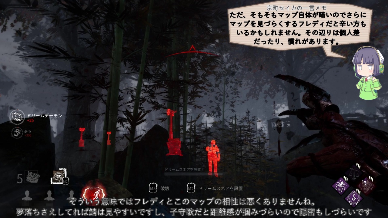 大体そんな感じ<br><br><a href="https://www.nicovideo.jp/watch/sm36079059" class="watch">sm36079059</a>←前回 リスト <a href="https://www.nicovideo.jp/mylist/62705262" target="_blank" rel="noopener">mylist/62705262</a> 次回→<a href="https://www.nicovideo.jp/watch/sm36142496" class="watch">sm36142496</a><br><br>コメントであった天誅天秤構成+αです。アプデ後からできるようになったやつです<br>通電後本気構成は通電しなかったので没です<br><br>以下パーク説明という名のコピペ<br><br>・天誅<br>パレットやロッカーなどを使って目くらましや怯ませてくる生存者はあなたのオブセッションとなる。<br>新たな生存者がオブセッションになるときは毎回忘却状態となり、その効果が40・50・60秒継続する。また彼らのオーラが4秒間視えるようになる。<br><br>・弄ばれる獲物<br>開始時、生存者の1人にオブセッション状態(※)を付与する。<br>オブセッション対象者を追跡して逃がすと、専用ポイントを1pt獲得する(最大3pt)。<br>専用ポイントを1つ所持する度に移動速度が3・4・5%増加する。<br><br>ただし、攻撃行動を1回行う度に専用ポイントが1つ消費する。<br>ポイントを取得・消費した場合、ポイント再取得に10・3秒必要。<br><br>・隠密の追跡<br>開始時、生存者の1人にオブセッション状態(※1)を付与する。<br>オブセッション状態の生存者をフックに吊るすと、最大2・3・4つまでトークンを獲得する。<br>1トークンにつき、追跡中の脅威範囲が4メートル減少する。<br>オブセッション状態の生存者をフックから救助した生存者は、オブセッション状態になる。オブセッション状態の生存者が生贄にさせるか殺害されると、すべてのトークンを失う。<br><br>・選択は君次第だ<br>フック救助成功時に32m以上離れてる場合、効果発動。<br>フック救出を行った生存者を一撃で這いずり状態にする。<br>ただし、このパーク効果は40・50・60秒の時間制限がある<br><br>発動すると、効果の再使用までに60秒必要。<br>