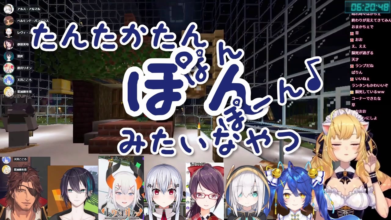 <span style="color: rgba(0, 0, 0, 0.87); font-size: 15px;">あまりにも参加者が多かったので特に脳死だった人たちをタイトルにぽんぱんぽん。私の脳みそもぽんぱかぽん。あと後半脳死しかしてなかったから絶対いろいろこぼれてる。あぷふぇ。<br><br>※立ち絵の人たちはアーカイブが無い人達です。また、黛さんの配信のおかげで当時の時間が把握しやすくできました。とっても感謝。<br>※※全員脳死のため、できるだけ音声が聞き取りやすい配信の音声を使用していますので、音声ソースが行き来します。<br>※※※舞元さんは途中で寝ました。本当にお疲れさまです。<br><br>ライバーさんたちの登録よろしくね!<br>鷹宮リオン<br><a href="https://www.youtube.com/channel/UCV5ZZlLjk5MKGg3L0n0vbzw" target="_blank" rel="noopener nofollow">https://www.youtube.com/channel/UCV5ZZlLjk5MKGg3L0n0vbzw</a><br><br>葉加瀬冬雪<br><a href="https://www.youtube.com/channel/UCGYAYLDE7TZiiC8U6teciDQ" target="_blank" rel="noopener nofollow">https://www.youtube.com/channel/UCGYAYLDE7TZiiC8U6teciDQ</a></span><br><br>天宮こころ<br><a href="https://www.youtube.com/channel/UCkIimWZ9gBJRamKF0rmPU8w" target="_blank" rel="noopener nofollow">https://www.youtube.com/channel/UCkIimWZ9gBJRamKF0rmPU8w</a><br><br><span style="color: rgba(0, 0, 0, 0.87); font-size: 15px;">舞元啓介<br><a href="https://www.youtube.com/channel/UCJubINhCcFXlsBwnHp0wl_g" target="_blank" rel="noopener nofollow">https://www.youtube.com/channel/UCJubINhCcFXlsBwnHp0wl_g</a><br><br>ベルモンド・バンデラス<br><a href="https://www.youtube.com/channel/UCbc8fwhdUNlqi-J99ISYu4A" target="_blank" rel="noopener nofollow">https://www.youtube.com/channel/UCbc8fwhdUNlqi-J99ISYu4A</a><br><br>レヴィ・エリファ<br><a href="https://www.youtube.com/channel/UCtnO2N4kPTXmyvedjGWdx3Q" target="_blank" rel="noopener nofollow">https://www.youtube.com/channel/UCtnO2N4kPTXmyvedjGWdx3Q</a><br><br>アルス・アルマル<br><a href="https://www.youtube.com/channel/UCdpUojq0KWZCN9bxXnZwz5w" target="_blank" rel="noopener nofollow">https://www.youtube.com/channel/UCdpUojq0KWZCN9bxXnZwz5w</a><br><br>郡道美玲<br><a href="https://www.youtube.com/channel/UCeShTCVgZyq2lsBW9QwIJcw" target="_blank" rel="noopener nofollow">https://www.youtube.com/channel/UCeShTCVgZyq2lsBW9QwIJcw</a><br><br>黛灰<br><a href="https://www.youtube.com/channel/UCb5JxV6vKlYVknoJB8TnyYg" target="_blank" rel="noopener nofollow">https://www.youtube.com/channel/UCb5JxV6vKlYVknoJB8TnyYg</a><br><br>桜凛月(一部資材提供)<br><a href="https://www.youtube.com/channel/UCfQVs_KuXeNAlGa3fb8rlnQ" target="_blank" rel="noopener nofollow">https://www.youtube.com/channel/UCfQVs_KuXeNAlGa3fb8rlnQ</a><br><br>youtube</span><br><a href="https://www.youtube.com/watch?v=dKtjzzd7eRw" target="_blank" rel="noopener nofollow">https://www.youtube.com/watch?v=dKtjzzd7eRw</a>