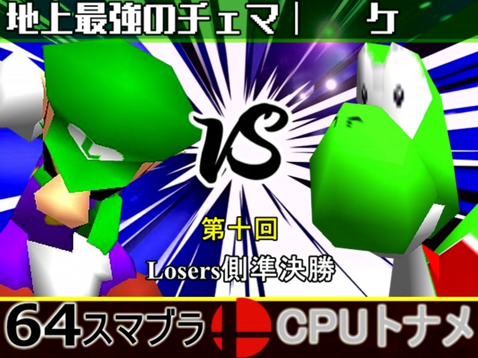 <span style="color: rgba(0, 0, 0, 0.87); font-size: 15px;">レイアとL決勝で相見えるのはどっちだ!?<br>※どちらが勝つかアンケ結果(Twitter調べ) <br>地上最強のチェマ(LU) 30% VS ケ(YO) 70%</span><br><br><span style="color: #0000ff; font-size: 13px;"><u>※64スマブラCPUトナメ実況wiki</u></span><span style="color: #0000ff; font-size: 13px;">→</span> <a href="https://wiki3.jp/64cpu_P" target="_blank" rel="noopener nofollow">https://wiki3.jp/64cpu_P</a><br><br><span style="color: #ff0000; font-size: 24px;"><strong>次→</strong></span>【<a href="https://www.nicovideo.jp/watch/sm36124588" class="watch">sm36124588</a>】※毎日投稿<br><br>前【<a href="https://www.nicovideo.jp/watch/sm36104255" class="watch">sm36104255</a>】 Winners一回戦第一試合【<a href="https://www.nicovideo.jp/watch/sm35872182" class="watch">sm35872182</a>】 <span style="color: #000000; font-size: 13px;">予選</span>Aブロック第一試合【<a href="https://www.nicovideo.jp/watch/sm35254266" class="watch">sm35254266</a>】 <br><span style="font-size: 14px;">第十回選手紹介動画【</span><span style="color: #006699; font-size: 14px;"><a href="https://www.nicovideo.jp/watch/sm35240933" class="watch">sm35240933</a></span><span style="font-size: 14px;">】</span><br>第十回マイリスト【<a href="https://www.nicovideo.jp/mylist/65788927" target="_blank" rel="noopener">mylist/65788927</a>】<br>64スマブラCPUトナメ実況part1まとめ【<a href="https://www.nicovideo.jp/mylist/60846861" target="_blank" rel="noopener">mylist/60846861</a>】<br>その他シリーズ【<a href="https://www.nicovideo.jp/mylist/12965027" target="_blank" rel="noopener">mylist/12965027</a>】<br><br><span style="color: #00bfff; font-size: 13px;"><strong>Twitter</strong></span>【<a href="https://twitter.com/niconicopppppp" target="_blank" rel="noopener nofollow">https://twitter.com/niconicopppppp</a> 】<br><span style="color: #ff4500; font-size: 13px;"><strong>チャンネル</strong></span>【<a href="https://ch.nicovideo.jp/p-desu" target="_blank" rel="noopener">ch.nicovideo.jp/p-desu</a>】