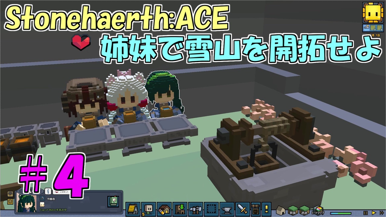 この動画では、「steam」で発売中の村づくりゲーム、「Stonehearth」において、北極圏マップを姉妹が開拓していきます。<br><br>前回:<a href="https://www.nicovideo.jp/watch/sm36026893" class="watch">sm36026893</a> || 次回:<a href="https://www.nicovideo.jp/watch/sm36180897" class="watch">sm36180897</a><br><span style="color: #000000;">パート1はこちら:<a href="https://www.nicovideo.jp/watch/sm35893343" class="watch">sm35893343</a></span><br>本シリーズマイリスト:<a href="https://www.nicovideo.jp/mylist/66815481" target="_blank" rel="noopener">mylist/66815481</a><br><br>「ACE」MODでできるようになったことがいっぱいありますが、今回もその一部、「井戸」をご紹介したいと思います。<br>モーションも凝られてておススメですよ!<br>本編は<a href="#" class="seekTime" data-seekTime="02:27" onclick="seekNicoPlayer('#02:27'); return false;">#02:27</a>~<br><br>遅れてごめんなさい、どたどたで編集が間に合いませんでした…<br>次回は予定に間に合うように頑張ります!<br><br>建物の建築については大きく変更された部分は少ないようです。<br>ブロックに対する透過方向の指定ができるようになりました。<br>その他は特には変わらないでしょうか…?<br><br>素敵な支援絵をいただきました。はしろ(鉄板焼)さん、ありがとうございます!<br>是非サイトの方にも遊びに行ってくださいね。<br><br>イラストのニコニコ静画ページリンク<br><a href="https://seiga.nicovideo.jp/seiga/im9876519" target="_blank" rel="noopener nofollow">https://seiga.nicovideo.jp/seiga/im9876519</a><br><br>はしろ(鉄板焼)さんのサイトリンク<br><a href="https://hasiros.tumblr.com/" target="_blank" rel="noopener nofollow">https://hasiros.tumblr.com/</a><br><br>何かあればツイッターへどうぞ <a href="https://twitter.com/riu_no_kiba" target="_blank" rel="noopener nofollow">https://twitter.com/riu_no_kiba</a><br><br>youtube始めました、ぜひ遊びに来てください<br><a href="https://www.youtube.com/channel/UC4NYNOfWTjQQkesWJRw0n8A?view_as=subscriber" target="_blank" rel="noopener nofollow">https://www.youtube.com/channel/UC4NYNOfWTjQQkesWJRw0n8A?view_as=subscriber</a><br><br><br>前作マイリスト → <a href="https://www.nicovideo.jp/mylist/63031927" target="_blank" rel="noopener">mylist/63031927</a><br><br>よろしければこちらのシリーズもよろしくお願いします。<br>「Let's go イーブイ」東北姉妹実況動画マイリスト:<a href="https://www.nicovideo.jp/mylist/63903600" target="_blank" rel="noopener">mylist/63903600</a><br>【ポケモン盾】ONEちゃはガラル地方で羽ばたきたい!マイリスト:<a href="https://www.nicovideo.jp/mylist/67134959" target="_blank" rel="noopener">mylist/67134959</a>