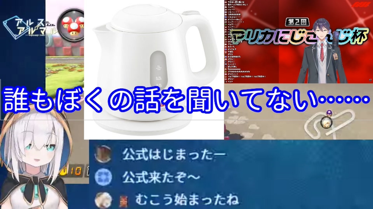 サムネ用にティファールの電気ケトルの画像探したときにビックリしたね。アルスにすげえ似てんだもん。<br><span style="color: #cccccc; font-size: 10px;">ちなみにアルスのこれはマジじゃなくてキレ芸です。念のため。</span><br><br>元動画<br>アルス:【マリオカート8】 #マリカにじさんじ杯 A予選がんばるぞおおお!!!【アルス・アルマル/にじさんじ】<br><a href="https://www.youtube.com/watch?v=mCVWJIqdZzA" target="_blank" rel="noopener nofollow">https://www.youtube.com/watch?v=mCVWJIqdZzA</a><br>大会本放送:第2回マリオカートにじさんじ杯【#マリカにじさんじ杯】<br><a href="https://www.youtube.com/watch?v=RniFgeUbGns" target="_blank" rel="noopener nofollow">https://www.youtube.com/watch?v=RniFgeUbGns</a><br><br>アルス・アルマル<br>YouTube:<a href="https://www.youtube.com/channel/UCdpUojq0KWZCN9bxXnZwz5w" target="_blank" rel="noopener nofollow">https://www.youtube.com/channel/UCdpUojq0KWZCN9bxXnZwz5w</a><br>Twitter:<a href="https://twitter.com/ars_almal" target="_blank" rel="noopener nofollow">https://twitter.com/ars_almal</a><br><br>YouTubeにも投稿しています。<br><a href="https://youtu.be/p92YCbSuZ6c" target="_blank" rel="noopener nofollow">https://youtu.be/p92YCbSuZ6c</a><br><br>今までに投稿したにじさんじの切り抜き→<a href="https://www.nicovideo.jp/mylist/66814260" target="_blank" rel="noopener">mylist/66814260</a>