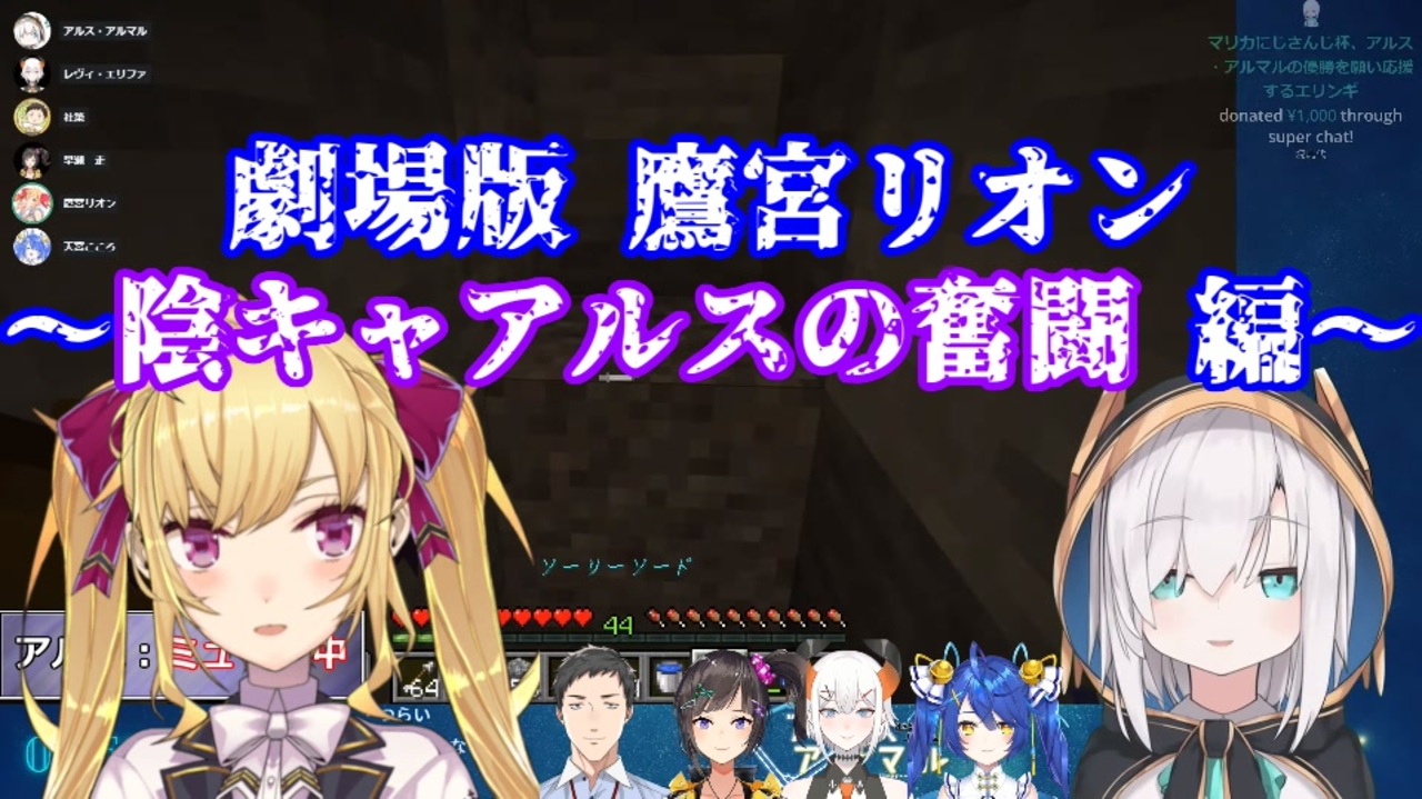 <span style="color: rgba(0, 0, 0, 0.87); font-size: 15px;">劇場版鷹宮リオンと題していますが、アルスを主眼に置いた編集をしています。ご承知おきください。<br>本編に当たる、リオン様を主眼に置いた地下労働編の作成も途中までしていましたが力尽きたため、リオン様のアーカイブを見るか誰かの切り抜きをお待ちいただければ幸いです。<br><br>関連動画(動画内の泣きマネに言及)→</span><a href="https://www.nicovideo.jp/watch/sm36131684" class="watch">sm36131684</a><br><br><span style="color: rgba(0, 0, 0, 0.87); font-size: 15px;">元動画<br>アルス:【Minecraft】地下労働!?ダイヤを50こ掘るまで帰れない!?【アルス・アルマル/にじさんじ】<br><a href="https://www.youtube.com/watch?v=1Dp1aP-kbYE" target="_blank" rel="noopener nofollow">https://www.youtube.com/watch?v=1Dp1aP-kbYE</a><br>リオン様:【地下労働送り】ダイヤ掘らないと出られない地下労働【鷹宮リオン/にじさんじ】<br><a href="https://www.youtube.com/watch?v=pjTM5SliYhs" target="_blank" rel="noopener nofollow">https://www.youtube.com/watch?v=pjTM5SliYhs</a><br><br>アルス・アルマル<br>YouTube:<a href="https://www.youtube.com/channel/UCdpUojq0KWZCN9bxXnZwz5w" target="_blank" rel="noopener nofollow">https://www.youtube.com/channel/UCdpUojq0KWZCN9bxXnZwz5w</a><br>Twitter:<a href="https://twitter.com/ars_almal" target="_blank" rel="noopener nofollow">https://twitter.com/ars_almal</a><br>鷹宮リオン<br>YouTube:<a href="https://www.youtube.com/channel/UCV5ZZlLjk5MKGg3L0n0vbzw" target="_blank" rel="noopener nofollow">https://www.youtube.com/channel/UCV5ZZlLjk5MKGg3L0n0vbzw</a><br>Twitter:<a href="https://twitter.com/TakamiyaRion" target="_blank" rel="noopener nofollow">https://twitter.com/TakamiyaRion</a></span><br><br>YouTubeにも投稿しています。<br><a href="https://youtu.be/4BxfYNPRHkc" target="_blank" rel="noopener nofollow">https://youtu.be/4BxfYNPRHkc</a><br><br>今までに投稿したにじさんじの切り抜き→<a href="https://www.nicovideo.jp/mylist/66814260" target="_blank" rel="noopener">mylist/66814260</a>
