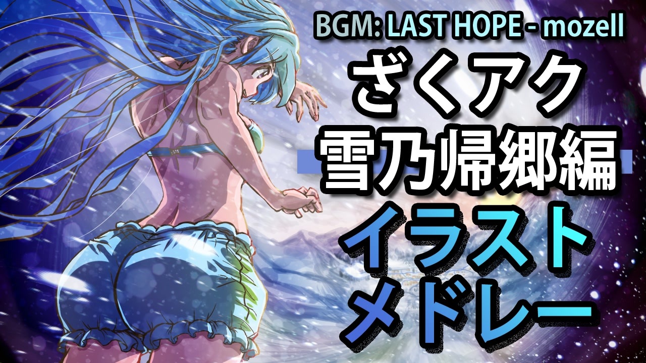 <span style="color: rgba(0, 0, 0, 0.87); font-size: 15px;">ざくざくアクターズ屈指の号泣イベント、雪乃帰郷編のイラストメドレーです。(ネタバレ注意!)<br>今回もたくさんのざくアクファンの方々に大変素敵なイラストをご提供頂いております。<br>BGM:LAST HOPE<br><br>●イラスト 43名 ※括弧内はTwitter名<br>流転 (@Routene_Work)<br>めんたいZ (@mentaiZ_menya)<br>ユリ丘 (@yurioka)<br>AQUA (@aqua_neos)<br>もちり (@mochiri_8888)<br>gerosiy (@gerosiy)<br>タカサゴ (@takasago_kz)<br>てっち (@tetch35)<br>レナルー (@renaru_ex)<br>閂 (@Lost_Paradigm)<br>エータル (@Ataru_desuzo)<br>太陽亭みかん<br>のぎぐち (@_Nogiguchi_)<br>木蓮 (@mokuren5)<br>りんご (@zakuaku_ira)<br>みうい<br>MAXウェル<br>NOIE (@FEIF_NOIE)<br>てけを (@GV50f8Lafq6xDj6)<br>春マキ (@hallo_macky)<br>凪 (@ngi754)<br>キン肉ビッグバディ (@MM_MuscleMan_BB)<br>きしだ (@unkokkoboin)<br>ホーロー (@HOROROTTO)<br>朋友 (@Zakuaku_Houyou)<br>コオリハナビ (@FrozenHanabi)<br>ridama<br>発火 (@ignite_hkk)<br>とえん (@toenten)<br>KIKU (@dQjjoCG93q2yXrT)<br>銅 (@cu29do)<br>御笠川 (@endymionsan)<br>わおーん (@waongal)<br>酒人 (@sakehito)<br>なごやん (@nagaru66、753Rider66)<br>ふらーれん@なみHEY (@full_wiz)<br>シェイン (@masashane)<br>きょろも (@yukkurizkak)<br>梱包 (@konpo_fb)<br>千葉 健<br>いつなともき<br>直比良ナノ (@nano_lean)<br>あち (@zkak_ac)<br><br>●ゲーム出典<br>ざくざくアクターズ (C)はむすた<br>はむすたブログ <a href="http://hamusuta.blog-rpg.com/" target="_blank" rel="noopener nofollow">http://hamusuta.blog-rpg.com/</a><br>はむすたBOOTH <a href="https://hamusutagame.booth.pm/" target="_blank" rel="noopener nofollow">https://hamusutagame.booth.pm/</a></span>