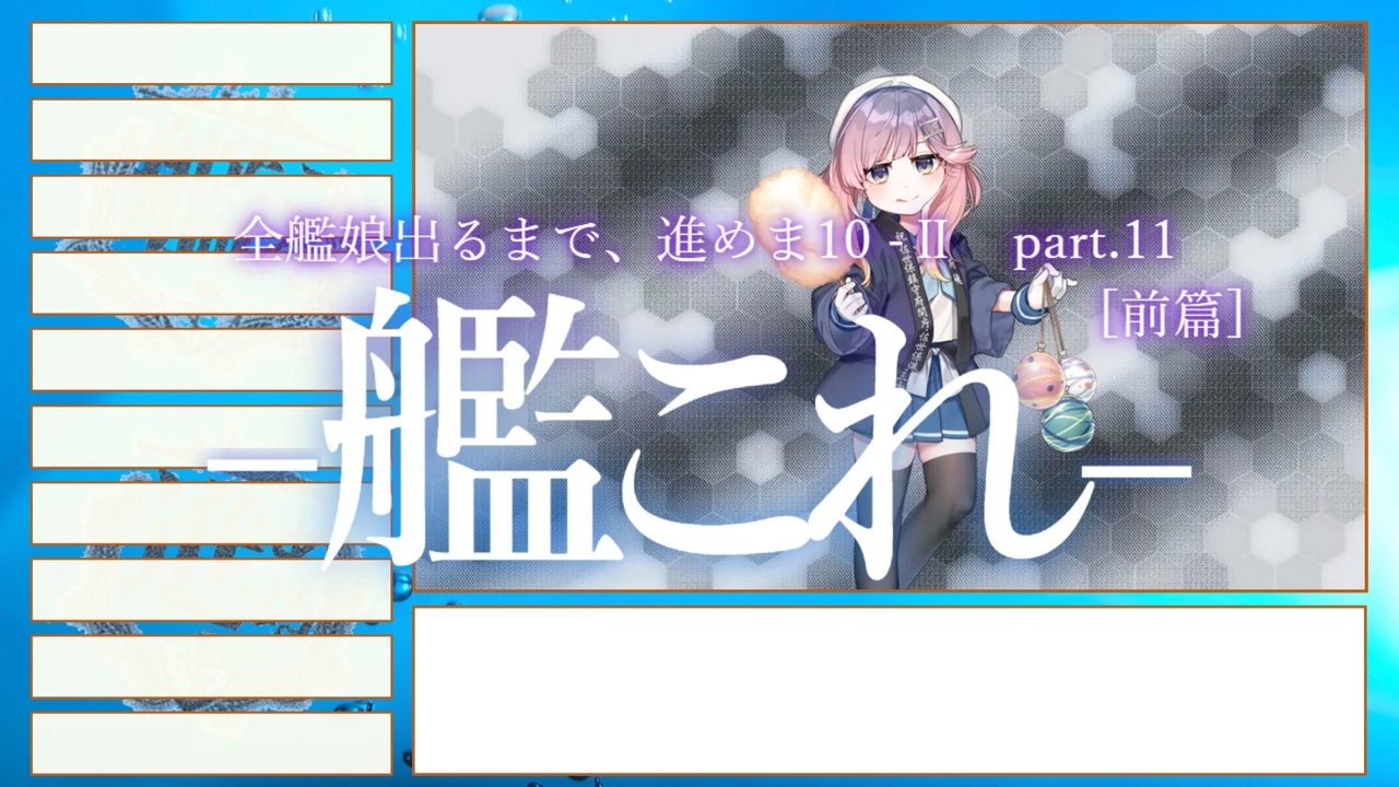 第十一話<span style="color: #000000; font-size: 13px;">[前]</span>「通常海域ドロップ論~応用編~」<br><br><span style="color: #0000ff;">【注意】 本動画は 『艦隊これくしょん-艦これ-』 の縛り実況プレイです。 <br>縛りの基本的なルールにつきましては1期のpart.1をご視聴下さい→(</span><a href="https://www.nicovideo.jp/watch/sm28068040" class="watch">sm28068040</a><span style="color: #0000ff;">)</span> <br><br>皆さまに支えられ、この一年でたくさん成長することができました。<br>これが年内最後の投稿になると思われます。<br>皆さまよいお年をお迎えください。イベントも頑張ってください。<br><br><span style="color: #ff0000;">※ドロップに関する情報は統計サイトから得られたデータを元に記述しています。<br> 必ずしも正しいわけではありませんので、予めご了承下さい。</span><br><br><strong>part.1 → <a href="https://www.nicovideo.jp/watch/sm34523313" class="watch">sm34523313</a></strong><br><span style="font-size: 13px;"><strong>part.10→ </strong></span><strong><a href="https://www.nicovideo.jp/watch/sm36108510" class="watch">sm36108510</a></strong><br><span style="color: #000000; font-size: 13px;"><strong>part.11[後]</strong></span><span style="font-size: 13px;"><strong>→</strong></span><strong><a href="https://www.nicovideo.jp/watch/sm36206237" class="watch">sm36206237</a><br><br>本シリーズ一覧→<a href="https://www.nicovideo.jp/mylist/54678466" target="_blank" rel="noopener">mylist/54678466</a><br>Twitter⇒@gyoku_LO_tea <br>一人DBコミュニティ→co3692539</strong>