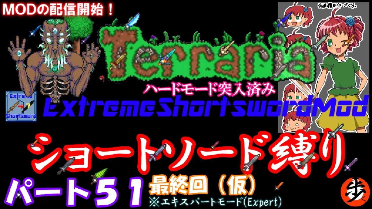今回もラスボスのムーンロード戦!<br>一応タイトルにも最終回と付いてますが、<br>もうちょっとだけ続くんじゃ♪<br><br>そして皆様よいお年を!<br><br><span style="font-size: 18px;"><strong>『Extremeshortsword』MOD公開中!</strong></span><br><strong>tModLoaderからダウンロード可能です!</strong><br><span style="font-size: 13px;"><strong>狂人用のcfモードもあるよ♪</strong></span><br><strong>(※動画内で質問やバグ等の情報は受け付けておりません!)</strong><br><br><span style="font-size: 13px;">歩く♪のツイッター→@aruku_douga</span><br><br>ルール(特に決めていませんが一応) <br>1.ショートソード以外の武器は使用しない。(攻撃が当たらない) <br>2.ゲーム内のボスを全て倒す。(イベントや襲撃は余裕があれば) <br>3.バグ技の使用は禁止 (当たり前) <br>4.編集は頑張らない () <br><a href="https://www.nicovideo.jp/watch/sm36111559" class="watch">sm36111559</a>←前 次回→<a href="https://www.nicovideo.jp/watch/sm36207764" class="watch">sm36207764</a> <span style="font-size: 13px;">2020年1月11日(土曜日)9時公開</span><br>番外編ドット絵→<a href="https://www.nicovideo.jp/watch/sm36178559" class="watch">sm36178559</a> <br>ショートソード縛りシリーズ→<a href="https://www.nicovideo.jp/series/12423" target="_blank" rel="noopener">series/12423</a><br>前シリーズ(オワタ式)シリーズ→<a href="https://www.nicovideo.jp/series/12415" target="_blank" rel="noopener">series/12415</a><br>歩くの過去シリーズ→<a href="https://www.nicovideo.jp/mylist/57583133" target="_blank" rel="noopener">mylist/57583133</a><br><br>今回のYouTube→<a href="https://youtu.be/L7wJh0QyX7U" target="_blank" rel="noopener nofollow">https://youtu.be/L7wJh0QyX7U</a>