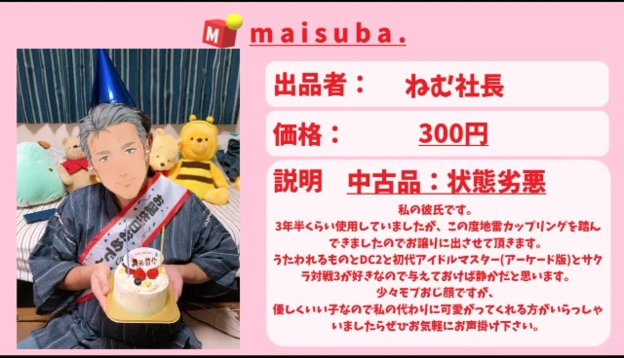 元動画【#舞スバ】maisuba.あなたの不用品、審査いたします!【年末地獄企画】<br><a href="https://www.youtube.com/watch?v=SePFIl898IU" target="_blank" rel="noopener nofollow">https://www.youtube.com/watch?v=SePFIl898IU</a><br>舞元啓介 youtube:<a href="https://www.youtube.com/channel/UCJubINhCcFXlsBwnHp0wl_g" target="_blank" rel="noopener nofollow">https://www.youtube.com/channel/UCJubINhCcFXlsBwnHp0wl_g</a><br> twitter:<a href="https://twitter.com/maimoto_k" target="_blank" rel="noopener nofollow">https://twitter.com/maimoto_k</a><br>大空スバルyoutube:<a href="https://www.youtube.com/channel/UCvzGlP9oQwU--Y0r9id_jnA" target="_blank" rel="noopener nofollow">https://www.youtube.com/channel/UCvzGlP9oQwU--Y0r9id_jnA</a><br> twitter:<a href="https://twitter.com/oozorasubaru?lang=ja" target="_blank" rel="noopener nofollow">https://twitter.com/oozorasubaru?lang=ja</a><br><br><span style="color: #000000; font-size: 14px;">切り抜きまとめ</span><span style="font-size: 14px;"><a href="https://www.nicovideo.jp/mylist/67317626" target="_blank" rel="noopener">mylist/67317626</a></span>