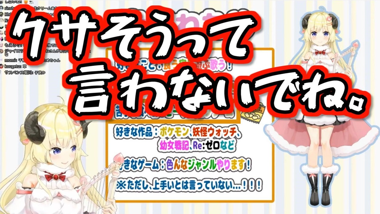 元動画様はこちら<br>わため <a href="https://youtu.be/OJyfFh9BGwI" target="_blank" rel="noopener nofollow">https://youtu.be/OJyfFh9BGwI</a><br>ノエル <a href="https://youtu.be/QplJi22Bios" target="_blank" rel="noopener nofollow">https://youtu.be/QplJi22Bios</a><br><br>Watame Ch. 角巻わため <a href="https://www.youtube.com/channel/UCqm3BQLlJfvkTsX_hvm0UmA" target="_blank" rel="noopener nofollow">https://www.youtube.com/channel/UCqm3BQLlJfvkTsX_hvm0UmA</a><br>Kanata Ch. 天音かなた <a href="https://www.youtube.com/channel/UCZlDXzGoo7d44bwdNObFacg" target="_blank" rel="noopener nofollow">https://www.youtube.com/channel/UCZlDXzGoo7d44bwdNObFacg</a><br>Coco Ch. 桐生ココ <a href="https://www.youtube.com/channel/UCS9uQI-jC3DE0L4IpXyvr6w" target="_blank" rel="noopener nofollow">https://www.youtube.com/channel/UCS9uQI-jC3DE0L4IpXyvr6w</a><br>Towa Ch. 常闇トワ <a href="https://www.youtube.com/channel/UC1uv2Oq6kNxgATlCiez59hw" target="_blank" rel="noopener nofollow">https://www.youtube.com/channel/UC1uv2Oq6kNxgATlCiez59hw</a><br>Luna Ch. 姫森ルーナ <a href="https://www.youtube.com/channel/UCa9Y57gfeY0Zro_noHRVrnw" target="_blank" rel="noopener nofollow">https://www.youtube.com/channel/UCa9Y57gfeY0Zro_noHRVrnw</a><br>Noel Ch. 白銀ノエル <a href="https://www.youtube.com/channel/UCdyqAaZDKHXg4Ahi7VENThQ" target="_blank" rel="noopener nofollow">https://www.youtube.com/channel/UCdyqAaZDKHXg4Ahi7VENThQ</a><br><br>【ホロ4期】天音かなた初配信まとめ <a href="https://www.nicovideo.jp/watch/sm36146231" class="watch">sm36146231</a><br>【ホロ4期】桐生ココ初配信まとめ <a href="https://www.nicovideo.jp/watch/sm36150710" class="watch">sm36150710</a><br>【ホロ4期】常闇トワ初配信まとめ <a href="https://www.nicovideo.jp/watch/sm36179961" class="watch">sm36179961</a><br>【ホロ4期】姫森ルーナ初配信まとめ <a href="https://www.nicovideo.jp/watch/sm36184563" class="watch">sm36184563</a><br><br><span style="color: gray; font-size: 10px;">なめたけ<br><a href="https://www.youtube.com/channel/UCUbAVVpHteGtGQPPN9lM3oQ/" target="_blank" rel="noopener nofollow">https://www.youtube.com/channel/UCUbAVVpHteGtGQPPN9lM3oQ/</a></span>