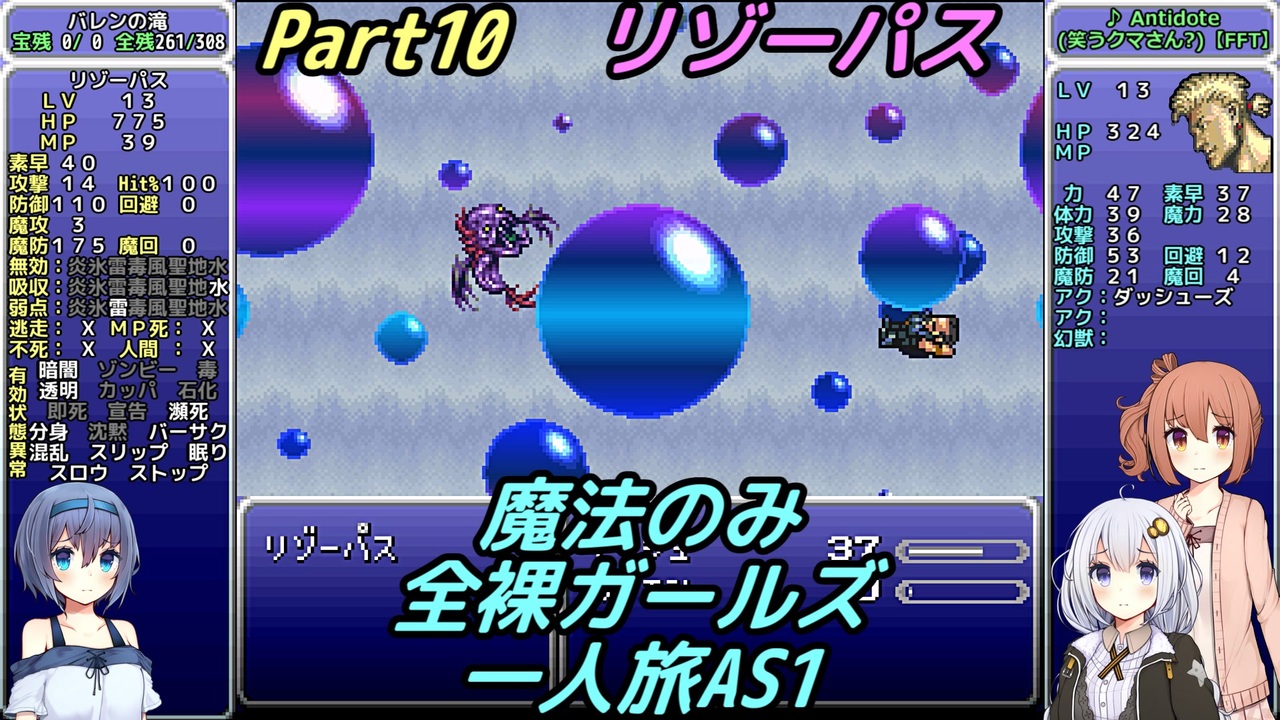 自由落下というヤツは、言葉で言うほど自由ではないのだな<br><br>・次回 … Part11 <a href="https://www.nicovideo.jp/watch/sm36234865" class="watch">sm36234865</a><br>・前回 … Part09 <a href="https://www.nicovideo.jp/watch/sm36004138" class="watch">sm36004138</a><br><br>・Youtube版 … <a href="https://youtu.be/bEGXMIAre8s" target="_blank" rel="noopener nofollow">https://youtu.be/bEGXMIAre8s</a><br>・字幕のみ … <a href="https://youtu.be/V6WZ73eNTxE" target="_blank" rel="noopener nofollow">https://youtu.be/V6WZ73eNTxE</a><br><br>【縛り内容】<br>1、魔法のみ<br>2、全裸(魔石はあり)<br>3、ガールズ<br>4、一人旅<br>5、アクティブ バトルスピード1 メッセージスピード1 詳細:<a href="https://www.nicovideo.jp/watch/sm34595412" class="watch">sm34595412</a><br>6、逃げられない!!表示の連射禁止<br>7、ボスの即死は禁止<br>8、宝物は全て集める<br>9、不具合やバグは不可<br>10、可能な限り低レベル<br>11、コマンド短縮やカーソル記憶しない<br>12、セーブ可能な場所でのみアイテム可<br>13、一部ストーリー上の編成でやむを得ない場合は最低限<br /><br>ふよふよしているの<br>絵:横沢さわらさん VOICEVOX:WhiteCUL<br><br>【シリーズ】<br>くうねるきゃんぷ … <a href="https://www.nicovideo.jp/series/516069" target="_blank" rel="noopener">series/516069</a><br>お写んぽ! … <a href="https://www.nicovideo.jp/series/435756" target="_blank" rel="noopener">series/435756</a><br>様子がおかしい! … <a href="https://www.nicovideo.jp/series/418875" target="_blank" rel="noopener">series/418875</a><br>FF7 魔法マテリアのみ初期防具ガールズ一人旅ASM … <a href="https://www.nicovideo.jp/series/438696" target="_blank" rel="noopener">series/438696</a><br>きんかつ!V-STROM1050XT … <a href="https://www.nicovideo.jp/series/144466" target="_blank" rel="noopener">series/144466</a><br>FF6 魔法のみ全裸ガールズ一人旅AS1 … <a href="https://www.nicovideo.jp/series/9438" target="_blank" rel="noopener">series/9438</a><br>おバイク!GLADIUS400 ABS … <a href="https://www.nicovideo.jp/series/68579" target="_blank" rel="noopener">series/68579</a><br>FF5 魔法のみ全裸一人旅AS1 … <a href="https://www.nicovideo.jp/series/9432" target="_blank" rel="noopener">series/9432</a><br>DQ3 呪文のみ全裸一人旅 … <a href="https://www.nicovideo.jp/series/9416" target="_blank" rel="noopener">series/9416</a><br>DQ2 ムーンブルクの王女一人旅 … <a href="https://www.nicovideo.jp/series/9414" target="_blank" rel="noopener">series/9414</a><br>DQ1 全裸 … <a href="https://www.nicovideo.jp/series/9412" target="_blank" rel="noopener">series/9412</a><br>FE 紋章の謎 天馬騎士単騎 第2部 英雄戦争 … <a href="https://www.nicovideo.jp/series/9404" target="_blank" rel="noopener">series/9404</a><br>FE 紋章の謎 天馬騎士単騎 第1部 暗黒戦争 … <a href="https://www.nicovideo.jp/series/9401" target="_blank" rel="noopener">series/9401</a><br>聖剣2 全裸プリム一人旅 武器Lv1など … <a href="https://www.nicovideo.jp/series/9396" target="_blank" rel="noopener">series/9396</a><br>ロマサガ2 魔術士不得意武器のみ … <a href="https://www.nicovideo.jp/series/9388" target="_blank" rel="noopener">series/9388</a><br>ロマサガ1 術法のみ一人旅で各イベント攻略 … <a href="https://www.nicovideo.jp/series/9386" target="_blank" rel="noopener">series/9386</a><br><br>SNSとか色々なリンク … <a href="https://lit.link/Unaa" target="_blank" rel="noopener nofollow">https://lit.link/Unaa</a>