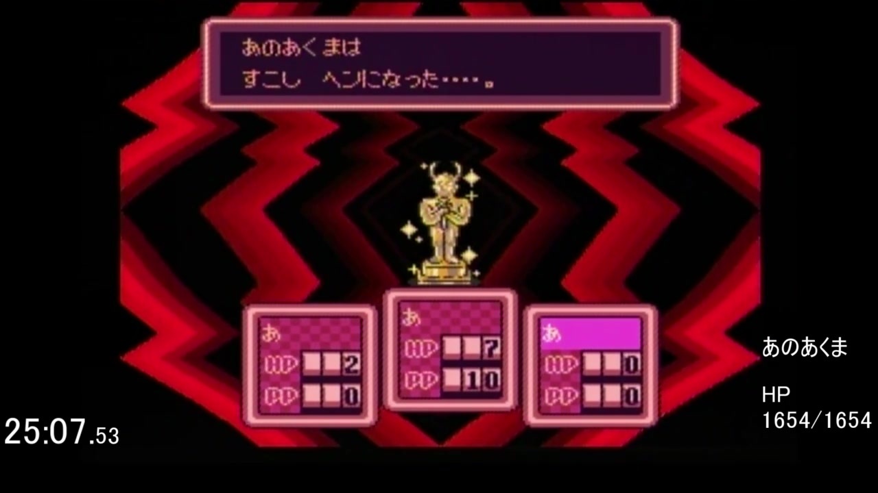 幾星霜のリセゲーの果てに行き着いた答え<br><br>タイマースタート:スーパーファミコンをリセット<br>タイマーストップ:"TO BE CONTINUED.."が表示<br><br>使用ハード:スーパーファミコンジュニア<br>コントローラ:スーパーファミコン用コントローラ<br><br>2/2→<a href="https://www.nicovideo.jp/watch/sm36182565" class="watch">sm36182565</a><br><br>無編集版(YouTube)<br><a href="https://youtu.be/59Al1EPwbwQ" target="_blank" rel="noopener nofollow">https://youtu.be/59Al1EPwbwQ</a><br><br>RTAのランキング(この動画の記録は43:39)<br><a href="https://www.speedrun.com/earthbound/full_game#Any" target="_blank" rel="noopener nofollow">https://www.speedrun.com/earthbound/full_game#Any</a><br><br>チャートに関するメモ<br><a href="https://note.com/octopuscal/n/n65c0fd0bf63d" target="_blank" rel="noopener nofollow">https://note.com/octopuscal/n/n65c0fd0bf63d</a><br><br>他のゲームのRTA<br><a href="https://www.nicovideo.jp/mylist/64228087" target="_blank" rel="noopener">mylist/64228087</a>