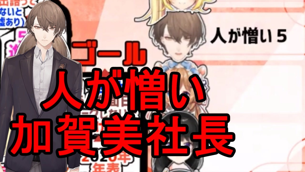圧がすごい。<br><br>楽しいすごろく大会 2020【でびでび・でびる/アルス・アルマル/エリー・コニファー/加賀美ハヤト/月ノ美兎/星川サラ/伏見ガク】<br><a href="https://www.youtube.com/watch?v=8IpK4nQiXQg&t=3s" target="_blank" rel="noopener nofollow">https://www.youtube.com/watch?v=8IpK4nQiXQg&t=3s</a><br>1:34:30~<br><br>加賀美ハヤト<br><a href="https://twitter.com/H_KAGAMI2434" target="_blank" rel="noopener nofollow">https://twitter.com/H_KAGAMI2434</a><br><a href="https://www.youtube.com/channel/UCmovZ2th3Sqpd00F5RdeigQ" target="_blank" rel="noopener nofollow">https://www.youtube.com/channel/UCmovZ2th3Sqpd00F5RdeigQ</a><br><br>でびでび・でびる<br><a href="https://twitter.com/debidebiru_sama" target="_blank" rel="noopener nofollow">https://twitter.com/debidebiru_sama</a><br><a href="https://www.youtube.com/channel/UCjlmCrq4TP1I4xguOtJ-31w" target="_blank" rel="noopener nofollow">https://www.youtube.com/channel/UCjlmCrq4TP1I4xguOtJ-31w</a><br><br>アルス・アルマル<br><a href="https://twitter.com/ars_almal?ref_src..." target="_blank" rel="noopener nofollow">https://twitter.com/ars_almal?ref_src...</a><br><a href="https://www.youtube.com/channel/UCdpUojq0KWZCN9bxXnZwz5w" target="_blank" rel="noopener nofollow">https://www.youtube.com/channel/UCdpUojq0KWZCN9bxXnZwz5w</a><br><br>エリー・コニファー<br><a href="https://twitter.com/Eli_Conifer" target="_blank" rel="noopener nofollow">https://twitter.com/Eli_Conifer</a><br><a href="https://www.youtube.com/channel/UCpNH2Zk2gw3JBjWAKSyZcQQ" target="_blank" rel="noopener nofollow">https://www.youtube.com/channel/UCpNH2Zk2gw3JBjWAKSyZcQQ</a><br><br>月ノ美兎<br><a href="https://twitter.com/MitoTsukino" target="_blank" rel="noopener nofollow">https://twitter.com/MitoTsukino</a><br><a href="https://www.youtube.com/channel/UCD-miitqNY3nyukJ4Fnf4_A" target="_blank" rel="noopener nofollow">https://www.youtube.com/channel/UCD-miitqNY3nyukJ4Fnf4_A</a><br><br>星川サラ<br><a href="https://twitter.com/sara_hoshikawa?la..." target="_blank" rel="noopener nofollow">https://twitter.com/sara_hoshikawa?la...</a><br><a href="https://www.youtube.com/channel/UC9V3Y3_uzU5e-usObb6IE1w" target="_blank" rel="noopener nofollow">https://www.youtube.com/channel/UC9V3Y3_uzU5e-usObb6IE1w</a><br><br>伏見ガク<br><a href="https://twitter.com/gaku_fushimi" target="_blank" rel="noopener nofollow">https://twitter.com/gaku_fushimi</a><br><a href="https://www.youtube.com/channel/UCXU7YYxy_iQd3ulXyO-zC2w" target="_blank" rel="noopener nofollow">https://www.youtube.com/channel/UCXU7YYxy_iQd3ulXyO-zC2w</a>
