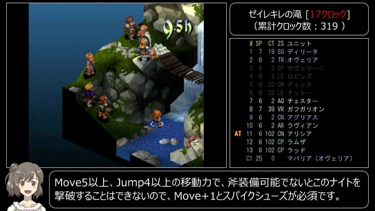 PS版FFTのシナリオを最小クロックでクリアするTAS動画です。<br>合成音声による解説がありますので、苦手な方はご注意ください。<br>プレイ条件の詳細については、Chapter1-1(<a href="https://www.nicovideo.jp/watch/sm35981364" class="watch">sm35981364</a>)の動画末尾で補足しています。<br><br><span style="font-size: 13px;">【プレイ条件】</span><br>1. シナリオ順に戦闘を最小クロックでクリア(勝利条件を満たしたクロックまでカウント)<br>2. 移動日数の最小化(アイテム購入目的の移動は可能)<br>3. メモリーカードからのデータロード禁止<br>4. バグの利用禁止<br><br><span style="font-size: 13px;">【プレイ環境】</span><br>エミュレータ: BizHawk 2.3.1<br>最終キー入力: 1053399 F(4:56:06)<br>追記回数: 53912<br><br><a href="https://www.nicovideo.jp/watch/sm36107061" class="watch">sm36107061</a> < 前:次 > <a href="https://www.nicovideo.jp/watch/sm36242034" class="watch">sm36242034</a><br><span style="color: #000000; font-size: 13px;">クリティカルヒットについて:</span><a href="https://www.nicovideo.jp/watch/sm36058415" class="watch">sm36058415</a><br>マイリスト:<a href="https://www.nicovideo.jp/mylist/66955206" target="_blank" rel="noopener">mylist/66955206</a><br><span style="color: #000000; font-size: 13px;">進捗報告:<a href="https://twitter.com/spherewind1" target="_blank" rel="noopener nofollow">https://twitter.com/spherewind1</a></span><br><br>※追記※ 13分あたり ×バルビューダ 〇バルビュータ