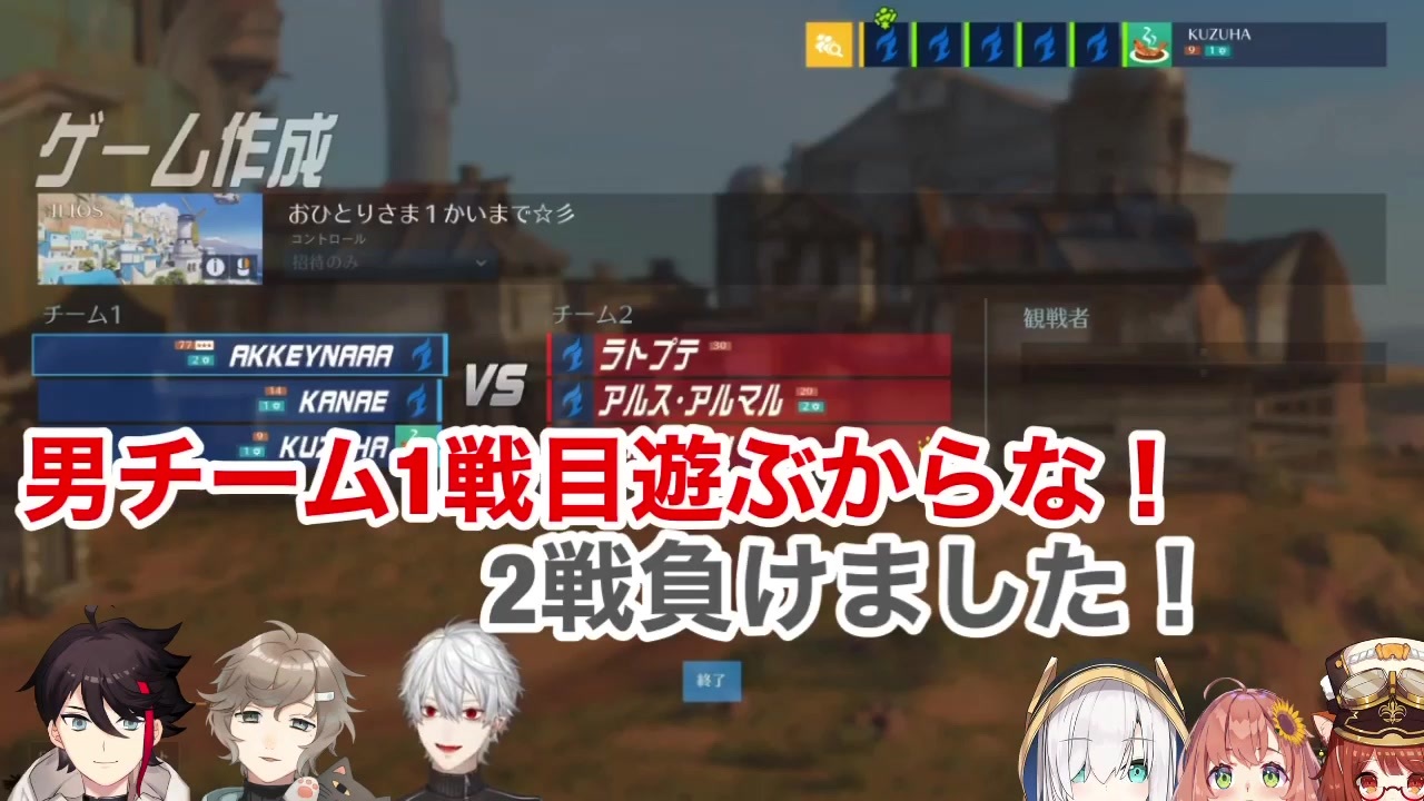 葛葉アーカイブ↓<br><a href="https://youtu.be/ZsxpNXR7Z5U" target="_blank" rel="noopener nofollow">https://youtu.be/ZsxpNXR7Z5U</a><br>叶アーカイブ↓<br><a href="https://youtu.be/iCvaj7Wqkjk" target="_blank" rel="noopener nofollow">https://youtu.be/iCvaj7Wqkjk</a><br>ひまわりアーカイブ↓<br><a href="https://youtu.be/w9dcxI3Rg9A" target="_blank" rel="noopener nofollow">https://youtu.be/w9dcxI3Rg9A</a><br>アルスアーカイブ↓<br><a href="https://youtu.be/TSM9g9qY0bE" target="_blank" rel="noopener nofollow">https://youtu.be/TSM9g9qY0bE</a><br>プティアーカイブ↓<br><a href="https://youtu.be/hxJMYg2aaC0" target="_blank" rel="noopener nofollow">https://youtu.be/hxJMYg2aaC0</a><br>三枝アーカイブ↓<br>無し<br><br>葛葉<br><a href="https://www.youtube.com/channel/UCSFCh5NL4qXrAy9u-u2lX3g" target="_blank" rel="noopener nofollow">https://www.youtube.com/channel/UCSFCh5NL4qXrAy9u-u2lX3g</a><br>叶<br><a href="https://www.youtube.com/channel/UCspv01oxUFf_MTSipURRhkA" target="_blank" rel="noopener nofollow">https://www.youtube.com/channel/UCspv01oxUFf_MTSipURRhkA</a><br>三枝明那<br><a href="https://www.youtube.com/channel/UCNW1Ex0r6HsWRD4LCtPwvoQ" target="_blank" rel="noopener nofollow">https://www.youtube.com/channel/UCNW1Ex0r6HsWRD4LCtPwvoQ</a><br>本間ひまわり<br><a href="https://www.youtube.com/channel/UC0g1AE0DOjBYnLhkgoRWN1w" target="_blank" rel="noopener nofollow">https://www.youtube.com/channel/UC0g1AE0DOjBYnLhkgoRWN1w</a><br>アルス・アルマル<br><a href="https://www.youtube.com/channel/UCdpUojq0KWZCN9bxXnZwz5w" target="_blank" rel="noopener nofollow">https://www.youtube.com/channel/UCdpUojq0KWZCN9bxXnZwz5w</a><br>ラトナ・プティ<br><a href="https://www.youtube.com/channel/UCIG9rDtgR45VCZmYnd-4DUw" target="_blank" rel="noopener nofollow">https://www.youtube.com/channel/UCIG9rDtgR45VCZmYnd-4DUw</a><br><br>にじさんじOW部vs視聴者配信の男女戦部分の字幕付き切り抜きです。結局男子チームは女子チームに一矢報う事が出来たのか…それは各々のアーカイブをご覧下さい。ちなみに葛葉以外の立ち絵は編集です。ご理解の程を。<br>誤字などあればご指摘をば。<br>何気にアッキーナ2020年最初の生声が乗った配信になりました(D-1は去年音源提出だったようなので)。<br>昨夜に新年初配信をしようとしてたらしいのですが、グラブルに熱中してしまっていたようです。今日はやるらしいですよ!また寝るなよ!<br>そういえば明日から社会人の皆様は正月休みが終わってお仕事ですね。まぁ私は昨日から仕事だったんですけどね〜。砂漠送葬。<br>学生の皆様はまだ冬休み…かな…?7日ぐらいまでだと思う…多分…。冬休みの宿題、ちゃんと終わらせましたか?前日にやると学生の時の私みたいに精神がぶっ壊れるのでちゃーんと早めに終わらせましょう!<br>あと受験生の皆さんはすぐにスマホ置いて受験勉強頑張って下さいね!近々センターだったかな…?勉強頑張って下さい!<br /><br><br><span style="font-size: 10px;">私のマイリスト→ <a href="https://www.nicovideo.jp/user/60201467/mylist" target="_blank" rel="noopener nofollow">https://www.nicovideo.jp/user/60201467/mylist</a><br>私のTwitter→ <a href="https://twitter.com/a1sy2of" target="_blank" rel="noopener nofollow">https://twitter.com/a1sy2of</a><br>YouTube→<a href="https://www.youtube.com/channel/UCDXZuseWr9okt-8A6_vi2Zg" target="_blank" rel="noopener nofollow">https://www.youtube.com/channel/UCDXZuseWr9okt-8A6_vi2Zg</a><br>ご質問→ <a href="https://marshmallow-qa.com/a1sy2of" target="_blank" rel="noopener nofollow">https://marshmallow-qa.com/a1sy2of</a> </span><br><br><span style="color: #ff0000; font-size: 10px;">※動画を無断で転載する事は過去の動画も含めて禁止にさせていただいております。<br>※悪質な行為が散見されたのでタグを埋めさせていただいております。ご理解の程よろしくお願いします。</span>