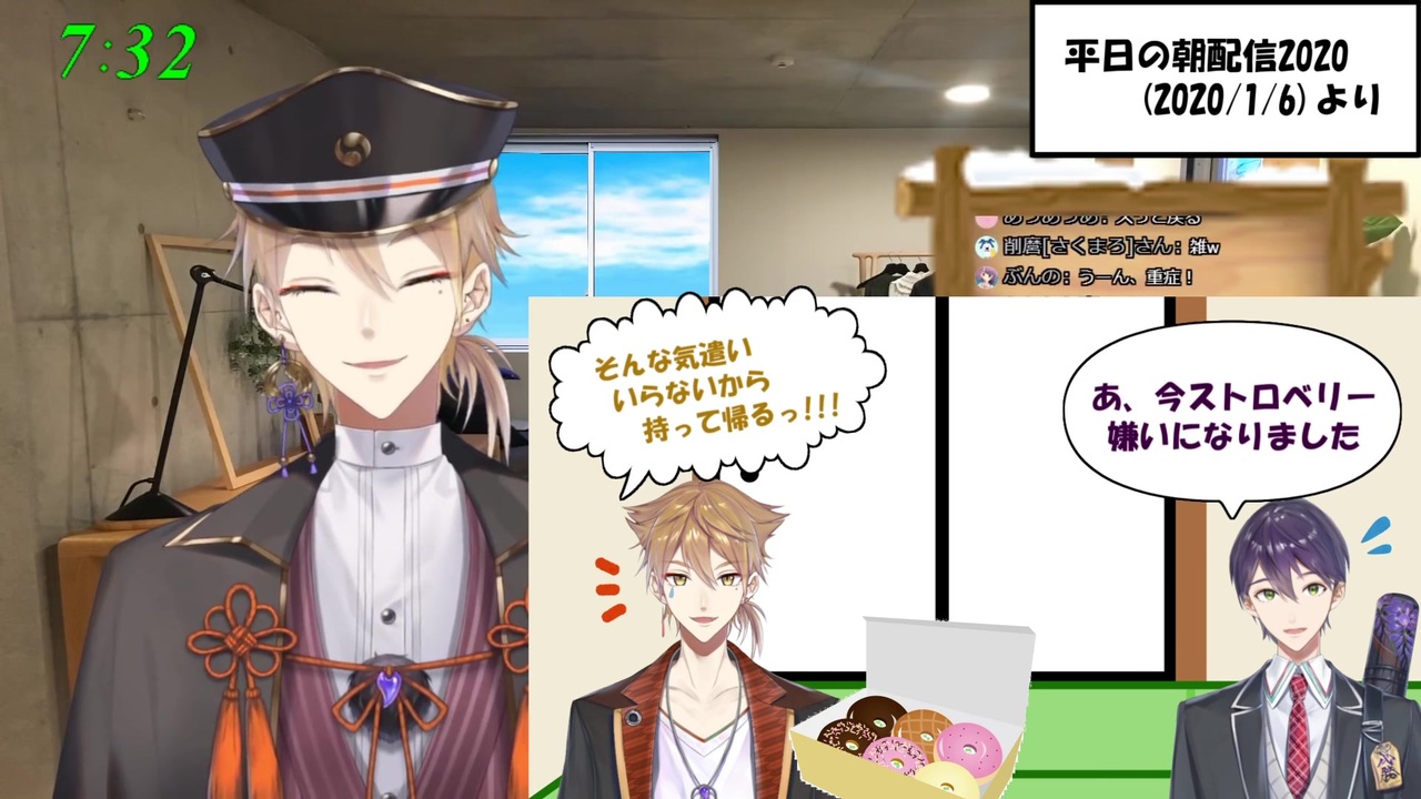 仲が良い<br>・伏見ガク<br>【Youtube】<a href="https://www.youtube.com/channel/UCXU7YYxy_iQd3ulXyO-zC2w?sub_confirmation=1" target="_blank" rel="noopener nofollow">https://www.youtube.com/channel/UCXU7YYxy_iQd3ulXyO-zC2w?sub_confirmation=1</a><br>【Twitter】 <a href="https://twitter.com/gaku_fushimi" target="_blank" rel="noopener nofollow">https://twitter.com/gaku_fushimi</a><br>・剣持刀也<br>【Youtube】<a href="https://www.youtube.com/channel/UCv1fFr156jc65EMiLbaLImw?sub_confirmation=1" target="_blank" rel="noopener nofollow">https://www.youtube.com/channel/UCv1fFr156jc65EMiLbaLImw?sub_confirmation=1</a><br>【Twitter】 <a href="https://twitter.com/rei_Toya_rei" target="_blank" rel="noopener nofollow">https://twitter.com/rei_Toya_rei</a><br><br>・元動画<br>【にじさんじ】平日の朝配信2020(2020/1/6)<br><a href="https://www.youtube.com/watch?v=COfYNT6kQ0I" target="_blank" rel="noopener nofollow">https://www.youtube.com/watch?v=COfYNT6kQ0I</a><br>▼該当箇所(45:19~)<br><a href="https://www.youtube.com/watch?v=COfYNT6kQ0I&feature=youtu.be&t=2719" target="_blank" rel="noopener nofollow">https://www.youtube.com/watch?v=COfYNT6kQ0I&feature=youtu.be&t=2719</a><br><span style="color: #000000; font-size: 14px;">・当日配信<br>新年咎人ホラゲー(2020/1/5)</span><br><span style="color: #006699; font-size: 14px;"><a href="https://www.youtube.com/watch?v=jN5329OFnrU" target="_blank" rel="noopener nofollow">https://www.youtube.com/watch?v=jN5329OFnrU</a></span>
