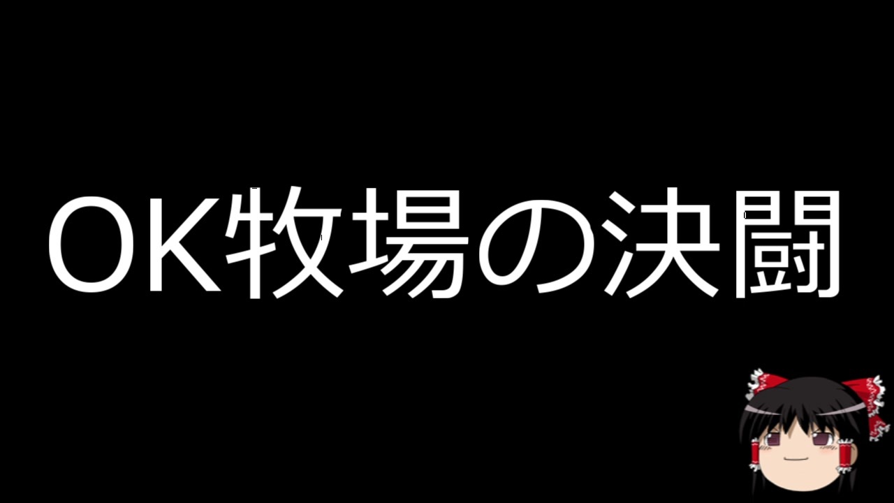 OK牧場の決闘<br><br>リクエストがあれば、お気軽にコメしてもらえると幸いです。<br><br>世界で起きた事件をゆっくりさんに読んでもらいました。<br>Wikipediaコピペです<br><br>使用したBGM、SEはSenses Circuit→ttp://www.senses-circuit.com<br><br>次→<a href="https://www.nicovideo.jp/watch/sm36212771" class="watch">sm36212771</a><br><br>世界事件簿マイリスト→<a href="https://www.nicovideo.jp/mylist/67318770" target="_blank" rel="noopener">mylist/67318770</a><br>MOTHER2マイリスト→<a href="https://www.nicovideo.jp/mylist/67848052" target="_blank" rel="noopener">mylist/67848052</a><br>ロックマンマイリスト→<a href="https://www.nicovideo.jp/mylist/67848049" target="_blank" rel="noopener">mylist/67848049</a><br>クトゥルフ神話マイリスト→<a href="https://www.nicovideo.jp/mylist/67468035" target="_blank" rel="noopener">mylist/67468035</a><br>日本事件簿マイリスト→<a href="https://www.nicovideo.jp/mylist/59772553" target="_blank" rel="noopener">mylist/59772553</a><br>SCPマイリスト→<a href="https://www.nicovideo.jp/mylist/59576028" target="_blank" rel="noopener">mylist/59576028</a><br>ゆっくり怪談マイリスト→<a href="https://www.nicovideo.jp/mylist/59576030" target="_blank" rel="noopener">mylist/59576030</a><br>不思議な病気マイリスト→<a href="https://www.nicovideo.jp/mylist/63539460" target="_blank" rel="noopener">mylist/63539460</a><br>PART1集→<a href="https://www.nicovideo.jp/mylist/59576031" target="_blank" rel="noopener">mylist/59576031</a><br>コミュ→co3663069