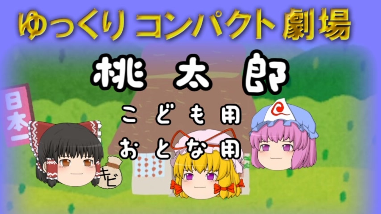 「ゆっくり文庫リスペクト」を作ってしまいました。<br><br>タイトルですが、当初元ネタの「土曜ワイド劇場」をもじって「ゆっくりワイド劇場」だったのですが「ワイド」ではないし、あっちの番組タイトルにもかぶるので「コンパクト」になりました。<br><br>あと、当初はキツイ所をハッピーな終わりにする物語をコンプトにしようと思っていました。<br>半分は達成できましたが、せっかくなので別のアプローチでも物語をご披露したくてつい「大人用」も作ってしまい、むしろこっちが本編に。<br>大人用は未成年の方のご視聴はお控えください。<br><br>・こども用 <a href="#" class="seekTime" data-seekTime="0:20" onclick="seekNicoPlayer('#0:20'); return false;">#0:20</a><br>・おとな用 <a href="#" class="seekTime" data-seekTime="2:15" onclick="seekNicoPlayer('#2:15'); return false;">#2:15</a><br><br>ゆっくりスペシャル「桃太郎プロパガンダ」回<br><a href="https://www.nicovideo.jp/watch/sm36472817" class="watch">sm36472817</a><br><br>次⇒<a href="https://www.nicovideo.jp/watch/sm36578586" class="watch">sm36578586</a><br><br>mylist⇒<a href="https://www.nicovideo.jp/mylist/67330756" target="_blank" rel="noopener">mylist/67330756</a><br><br><br />うp主のクリ奨扱いの番組(ギフト)<br>●動画投稿講座(海兵隊式)<br><a href="https://www.nicovideo.jp/watch/sm41183459" class="watch">sm41183459</a><br><br>●ほしいものリスト(同じものでも全然嬉しい)<br><a href="https://www.amazon.co.jp/hz/wishlist/ls/20X2QKDPSW451?ref_=wl_share" target="_blank" rel="noopener nofollow">https://www.amazon.co.jp/hz/wishlist/ls/20X2QKDPSW451?ref_=wl_share</a><br>●匿名で送る方法<br><a href="https://appllio.com/amazon-wish-list" target="_blank" rel="noopener nofollow">https://appllio.com/amazon-wish-list</a><br><br>うp主の動画<br>ゆっくりのワイドショー⇒<a href="https://www.nicovideo.jp/mylist/45200880" target="_blank" rel="noopener">mylist/45200880</a><br>ゆっくりコンパクト劇場⇒<a href="https://www.nicovideo.jp/mylist/67330756" target="_blank" rel="noopener">mylist/67330756</a><br>ゆっくりロードショー⇒<a href="https://www.nicovideo.jp/mylist/51596849" target="_blank" rel="noopener">mylist/51596849</a><br>おもちゃ箱⇒<a href="https://www.nicovideo.jp/series/265908" target="_blank" rel="noopener">series/265908</a><br>ようつべセブンのチャンネル<br><a href="http://www.youtube.com/c/sevenyoutube" target="_blank" rel="noopener nofollow">http://www.youtube.com/c/sevenyoutube</a><br><br>ニコニコ大百科 ゆっくりのワイドショー<br><a href="https://dic.nicovideo.jp/id/5337230" target="_blank" rel="noopener nofollow">https://dic.nicovideo.jp/id/5337230</a><br><br>ニコニコ大百科 ゆっくり文庫リスペクト<br><a href="https://dic.nicovideo.jp/id/5701480" target="_blank" rel="noopener nofollow">https://dic.nicovideo.jp/id/5701480</a><br><br><a target="_blank" href="https://qa.nicovideo.jp/faq/show/19424?site_domain=default" style="font-size: 13px;color: #657586; text-decoration: underline; line-height: 1.4">この動画は投稿者によって修正されました</a>