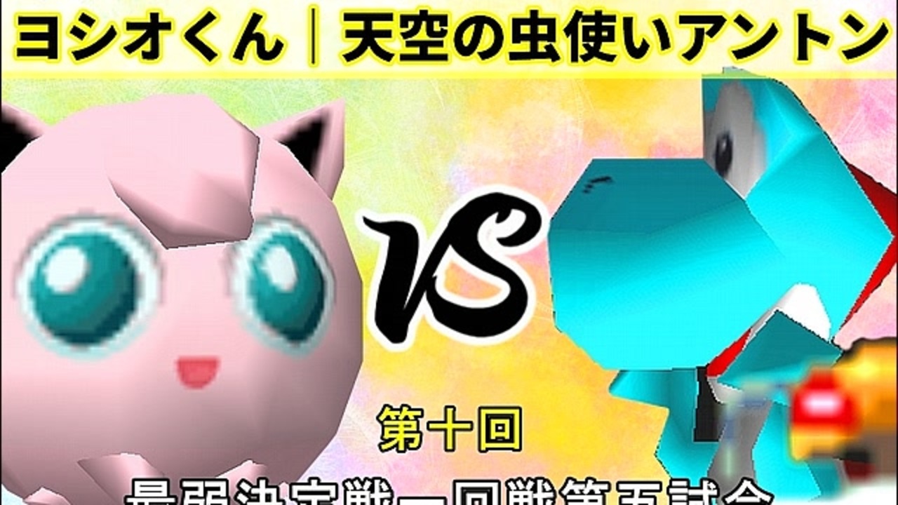 <span style="color: rgba(0, 0, 0, 0.87); font-size: 15px;">はちが出たら除名<br>※どちらが【負けるか】アンケ結果(Twitter調べ) <br>ヨシオくん(PU) 88% VS 天空の虫使いアントン(YO) 12%</span><br><br><span style="color: #0000ff; font-size: 13px;"><u>※64スマブラCPUトナメ実況wiki</u></span><span style="color: #0000ff; font-size: 13px;">→</span> <a href="https://wiki3.jp/64cpu_P" target="_blank" rel="noopener nofollow">https://wiki3.jp/64cpu_P</a><br><br><span style="color: #ff0000; font-size: 24px;"><strong>次→</strong></span>【<a href="https://www.nicovideo.jp/watch/sm36217807" class="watch">sm36217807</a>】※毎日投稿<br><br>前【<a href="https://www.nicovideo.jp/watch/sm36207754" class="watch">sm36207754</a>】 最弱一回戦【<a href="https://www.nicovideo.jp/watch/sm36195151" class="watch">sm36195151</a>】 <br>Winners一回戦第一試合【<a href="https://www.nicovideo.jp/watch/sm35872182" class="watch">sm35872182</a>】 <span style="color: #000000; font-size: 13px;">予選</span>Aブロック第一試合【<a href="https://www.nicovideo.jp/watch/sm35254266" class="watch">sm35254266</a>】 <br><span style="font-size: 14px;">第十回選手紹介動画【</span><span style="color: #006699; font-size: 14px;"><a href="https://www.nicovideo.jp/watch/sm35240933" class="watch">sm35240933</a></span><span style="font-size: 14px;">】</span><br>第十回マイリスト【<a href="https://www.nicovideo.jp/mylist/65788927" target="_blank" rel="noopener">mylist/65788927</a>】<br>64スマブラCPUトナメ実況part1まとめ【<a href="https://www.nicovideo.jp/mylist/60846861" target="_blank" rel="noopener">mylist/60846861</a>】<br>その他シリーズ【<a href="https://www.nicovideo.jp/mylist/12965027" target="_blank" rel="noopener">mylist/12965027</a>】<br><br><span style="color: #00bfff; font-size: 13px;"><strong>Twitter</strong></span>【<a href="https://twitter.com/niconicopppppp" target="_blank" rel="noopener nofollow">https://twitter.com/niconicopppppp</a> 】<br><span style="color: #ff4500; font-size: 13px;"><strong>チャンネル</strong></span>【<a href="https://ch.nicovideo.jp/p-desu" target="_blank" rel="noopener">ch.nicovideo.jp/p-desu</a>】