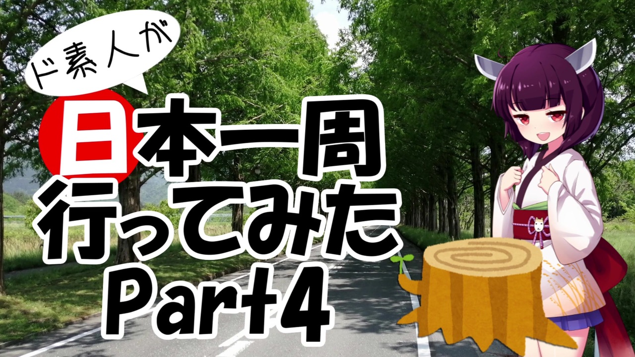 看板や面白そうな所見つけたら、ふらっと立ち寄れるのがバイクの良いところですね。<br>それで良い景色や美味しい物と出会える時が個人的に一番楽しい時です。<br><br>opの動くご一行は白岩さんから頂きました。<br>変態さんですね・・・!<br>白岩さん→【<a href="https://www.nicovideo.jp/mylist/66547722" target="_blank" rel="noopener">mylist/66547722</a>】<br><br>※1080p対応です<br><br>前→Part3【<a href="https://www.nicovideo.jp/watch/sm36156219" class="watch">sm36156219</a>】<br>次→Part5【<a href="https://www.nicovideo.jp/watch/sm36294324" class="watch">sm36294324</a>】<br><br>Part1→【<a href="https://www.nicovideo.jp/watch/sm36018324" class="watch">sm36018324</a>】<br><br>今回お世話になった方<br>吐血ちゃん【<a href="https://www.nicovideo.jp/series/91275" target="_blank" rel="noopener">series/91275</a>】<br><br>ド素人が日本一周行ってみたのマイリスト→<a href="https://www.nicovideo.jp/mylist/64280441" target="_blank" rel="noopener">mylist/64280441</a><br><br>YouTube版→<a href="https://www.youtube.com/channel/UCTsmHpxtyOEQO_tkqZ4D42A" target="_blank" rel="noopener nofollow">https://www.youtube.com/channel/UCTsmHpxtyOEQO_tkqZ4D42A</a><br><br>詳細な感想などはTwitterやブログでどうぞ。<br>Twitter:<a href="https://twitter.com/kyobon_beginner" target="_blank" rel="noopener nofollow">https://twitter.com/kyobon_beginner</a><br>ブログ:<a href="https://kyobon-beginner.hatenablog.com" target="_blank" rel="noopener nofollow">https://kyobon-beginner.hatenablog.com</a>
