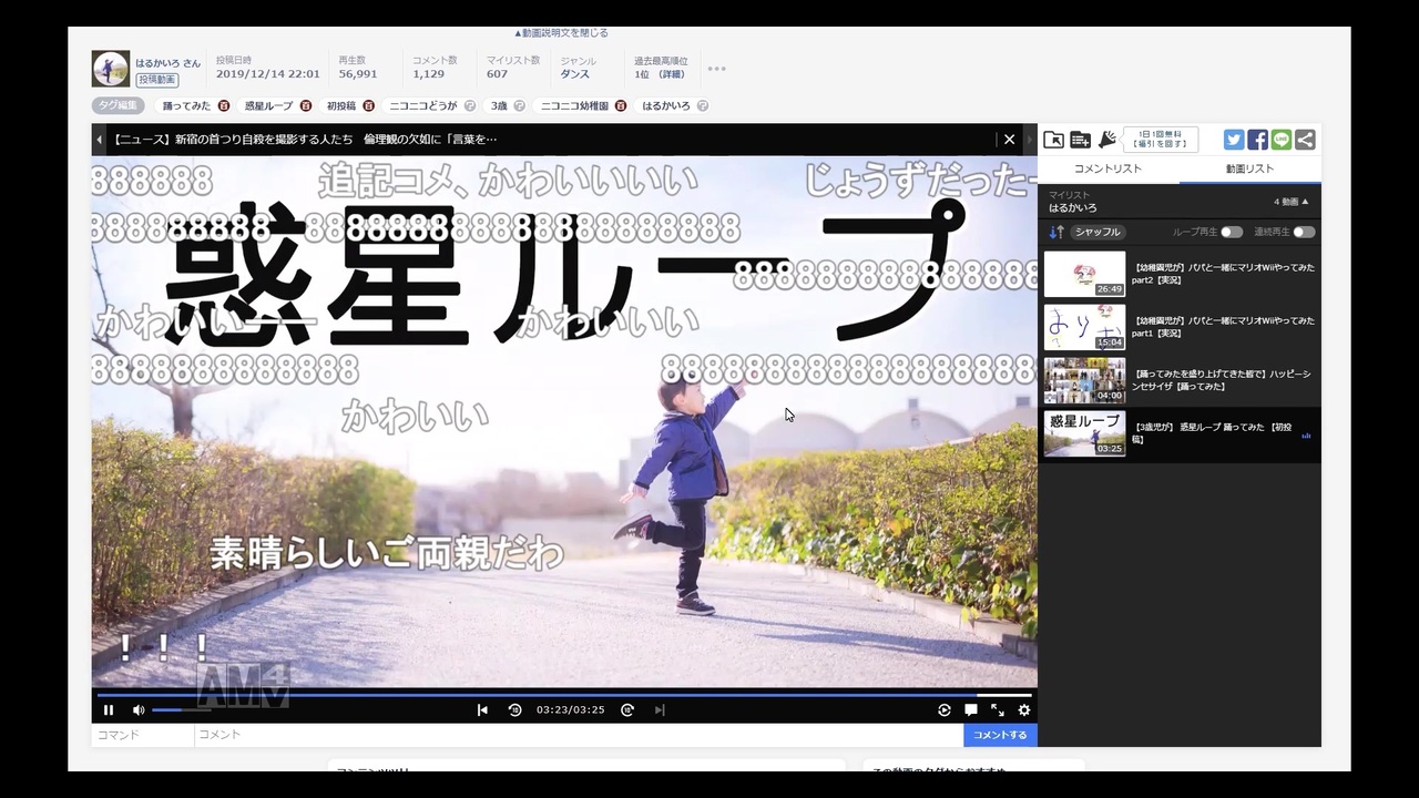 <span style="color: #000000; font-size: 14px;">はるかいろの 惑星ループ 踊ってみた に沢山のコメント頂きまして<br>ありがとうございました。<br><br>はるかいろは自分の動画を見るのにハマっています。<br>こんな感じでいつも見ています。楽しい。<br>楽しく読んでます、ありがとうございます!</span><br><br><span style="color: #000000; font-size: 10px;">あと、文字の勉強になってありがたい……</span><br><br><br><br><span style="color: #000000; font-size: 14px;">もしよければ、ひらがなかカタカナでコメントいただければ<br>息子と一緒に楽しめますのでお願いします…!</span><br /><br>はるかいろ<br><span style="font-size: 13px;">Twitter: </span><a href="https://twitter.com/harukairo2016" target="_blank" rel="noopener nofollow">https://twitter.com/harukairo2016</a><br>マイリスト: <a href="https://www.nicovideo.jp/mylist/67179945" target="_blank" rel="noopener nofollow">https://www.nicovideo.jp/mylist/67179945</a><br><br>Youtube: <a href="https://www.youtube.com/channel/UCbzHm5OKjO7qKr3NxRJN2aw/" target="_blank" rel="noopener nofollow">https://www.youtube.com/channel/UCbzHm5OKjO7qKr3NxRJN2aw/</a>