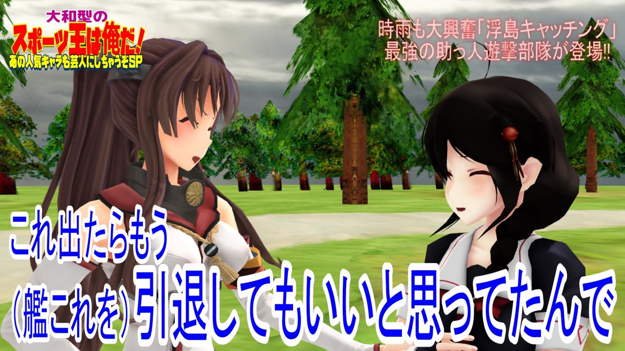 石橋大和「時雨のヤツぅ~、矢矧と共にアニメ主役になったからって調子乗りやがってぇ~…」<br><br>石橋大和「<span style="font-size: 18px;">こうなったら二人揃ってゴルフで艦娘の厳しさを教えてくれるわ!!!</span>」<br><br>武蔵憲武「という事で早速時雨をはじめとする西村艦隊と矢矧他アニメ二期に登場しそうな艦娘をゴルフコンペに誘ってみたんですが、<br><br><span style="font-size: 24px;">西村艦隊は扶桑と山城がインフル! <br>矢矧のヤツは既に危険を察知してハワイに逃亡! <br>他呼んだ艦娘も全員イベント参加で不在!<br>見事にぐだぐだです‼</span><br><br>仕方ないんで1MYBをリストラされた酒匂にとりあえず友達集めさせておきました!」<br><br>酒匂「<strong>いやまだ1MYB脱退したとか言ってないし!! てか収録前日に無茶振り本当にやめて!!</strong>」<br><br><br>※酒匂は秋イベE6の出撃から帰ってきたばかりのところを大和型(出撃なし)に連れ去られました。<br><br><br><br>いつものテニスがなかったので今回はゴルフ対決に挑戦です。<br><br><br>去年はベイををBay⇒<a href="https://www.nicovideo.jp/watch/sm34429188" class="watch">sm34429188</a><br><br>更にasuさんの瑞鶴で今年のスポーツ王を楽しんでください!⇒<a href="https://www.nicovideo.jp/watch/sm34428095" class="watch">sm34428095</a><br><br>みんなで笑顔を目指して…MMDバラエティシリーズ登場⇒<a href="https://www.nicovideo.jp/series/4067" target="_blank" rel="noopener">series/4067</a><br>満潮モデルは槭樹式ではなくへな羊式(<a href="https://www.melonbooks.co.jp/detail/detail.php?product_id=617864)です" target="_blank" rel="noopener nofollow">https://www.melonbooks.co.jp/detail/detail.php?product_id=617864)です</a>。大変申し訳ありません…。