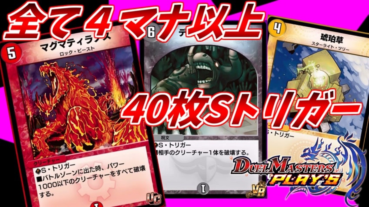 フルSトリガーデッキ改です。全て4マナ以上なので、<br>シールドを割られた時のアクションが強いです。<br><br>前→<a href="https://www.nicovideo.jp/watch/sm36190563" class="watch">sm36190563</a> 次→<a href="https://www.nicovideo.jp/watch/sm36271255" class="watch">sm36271255</a><br><br><span style="color: #000000; font-size: 13px;">【デュエプレマイリス】<a href="https://www.nicovideo.jp/mylist/67230182" target="_blank" rel="noopener">mylist/67230182</a></span><br><span style="color: #000000;">【チャンネル】</span><span style="color: #006699; font-size: 14px;"><a href="https://ch.nicovideo.jp/ainosensi" target="_blank" rel="noopener">ch.nicovideo.jp/ainosensi</a></span><br><span style="color: #000000; font-size: 14px;">【その他投稿作品】</span><span style="color: #006699; font-size: 14px;"><a href="https://www.nicovideo.jp/mylist/34427287" target="_blank" rel="noopener">mylist/34427287</a></span><span style="color: #000000; font-size: 14px;"> 【Twitter】@ainosensi2</span><br><span style="color: #14171a; font-size: 14px;">【YOUTUBE】</span><span style="color: #006699; font-size: 14px;"><a href="http://goo.gl/OMphlA" target="_blank" rel="noopener nofollow">http://goo.gl/OMphlA</a></span>