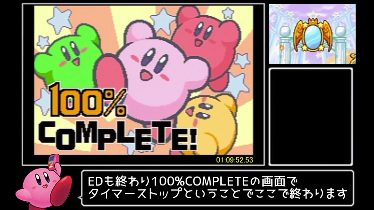 2019/12/8 配信内(<a href="https://live.nicovideo.jp/watch/lv323272445" target="_blank" rel="noopener">lv323272445</a>)にて<br><br>・計測方法<br>ファイルセレクトのひとりでを押してから100%COMPLETEの画面が表示されるまで<br><br>・環境<br>GBI<br><br>全part結合&SE無し版<br><a href="http://youtu.be/s9mH0OtZxSA" target="_blank" rel="noopener nofollow">http://youtu.be/s9mH0OtZxSA</a><br><br>リーダーボード<br><a href="https://www.speedrun.com/katam#100" target="_blank" rel="noopener nofollow">https://www.speedrun.com/katam#100</a><br><br>part1→<a href="https://www.nicovideo.jp/watch/sm36223429" class="watch">sm36223429</a><br>part2→<a href="https://www.nicovideo.jp/watch/sm36227666" class="watch">sm36227666</a><br>part3→ここ<br><br><br>投稿したRTA解説part1まとめ<br><a href="https://www.nicovideo.jp/mylist/67368614" target="_blank" rel="noopener">mylist/67368614</a><br><br>