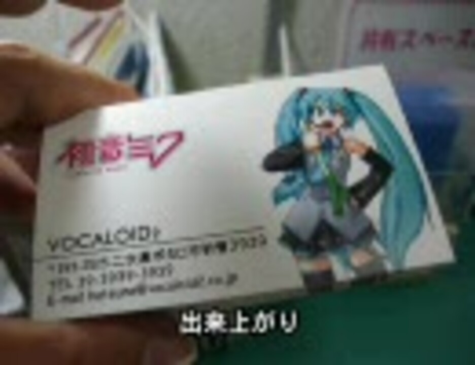 久しぶりの判子業者のうp主です。<br />判子業ですが実は名刺やハガキ等の印刷も手がけておりますので<br />今度は社会人には必須の名刺にしてみました。 社会科見学気分で御覧ください。<br />BGMお借りしました:サラリーマンのうた:<a href="https://www.nicovideo.jp/watch/sm2224359" class="watch">sm2224359</a><br /><br />追記:⑧番の元ネタです:<a href="https://www.nicovideo.jp/watch/sm1384282" class="watch">sm1384282</a> 気になっている方もいると思いますのでw<br />あとイラストはピアプロにもうpしています。良かったらどうぞー。<a href="http://piapro.jp/a/content/?id=p6bk8xc7srwz64h2" target="_blank" rel="noopener nofollow">http://piapro.jp/a/content/?id=p6bk8xc7srwz64h2</a><br /><br /><b>2/10追記:「あの楽器」東京ミーティングの参加証を提供させて頂きました。<br />そのミクさん絵はこちら → <a href="http://piapro.jp/content/dkkv9mlhqduy0hiu" target="_blank" rel="noopener nofollow">http://piapro.jp/content/dkkv9mlhqduy0hiu</a><b></b></b>