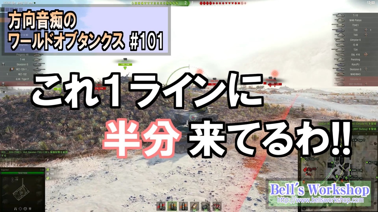 昔は強戦車、今もまーまー強戦車T-54、ひさびさ登場です。<br>前:<a href="https://www.nicovideo.jp/watch/sm36201066" class="watch">sm36201066</a> 次:<a href="https://www.nicovideo.jp/watch/sm36262179" class="watch">sm36262179</a> マイリスト:<a href="https://www.nicovideo.jp/mylist/44599831" target="_blank" rel="noopener">mylist/44599831</a><br>※Part101裏話:<a href="http://bellsworkshop.com/wot-part101/" target="_blank" rel="noopener nofollow">http://bellsworkshop.com/wot-part101/</a><br><br>ブログ<br> <a href="http://www.bellsworkshop.com/" target="_blank" rel="noopener nofollow">http://www.bellsworkshop.com/</a><br><br>Youtubeチャンネル<br> <a href="http://www.youtube.com/user/bellsworkshop" target="_blank" rel="noopener nofollow">http://www.youtube.com/user/bellsworkshop</a><br><br>Music:purple planet royalty free music <a href="http://www.purple-planet.com/" target="_blank" rel="noopener nofollow">http://www.purple-planet.com/</a><br>Sound:On-Jin ~音人~ <a href="http://on-jin.com/" target="_blank" rel="noopener nofollow">http://on-jin.com/</a><br><br>[この動画はウォーゲーミングジャパン株式会社が権利を所有する著作物を利用しております。© Wargaming.net]
