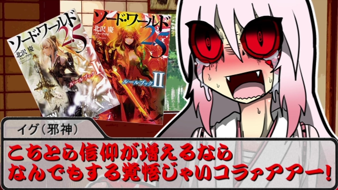 <span style="color: #ff0000; font-size: 24px;"><strong>やっぱり人外が最高だなって</strong></span><br><br>初投稿です(嘘は言ってない<br>コンセプトは「クトゥルフ神話TRPGは知ってるけど他のTRPGやSWシリーズは良く知らない・・」という人でも分かりやすいSW2.5動画<br>解説マシマシ<s>性癖マシマシ</s>でお送りいたします<br><br>過去に投稿したクトゥルフ神話TRPGシリーズ(別垢、咳風邪が代理うpしています)<br>鬼と宴とB級ホラークトゥルフ!【<a href="https://www.nicovideo.jp/mylist/33577448" target="_blank" rel="noopener">mylist/33577448</a>】<br>続!鬼と宴とB級ホラークトゥルフ!【<a href="https://www.nicovideo.jp/mylist/59672667" target="_blank" rel="noopener">mylist/59672667</a>】<br><br>ちなみにPLの3人は前シリーズでLINEスタンプになっていますので是非是非<br><span style="color: #006699; font-size: 14px;"><a href="https://store.line.me/stickershop/product/3858633/ja" target="_blank" rel="noopener nofollow">https://store.line.me/stickershop/product/3858633/ja</a> 蟲子<br><br><a href="https://store.line.me/stickershop/product/4645997/ja" target="_blank" rel="noopener nofollow">https://store.line.me/stickershop/product/4645997/ja</a> ざくろ<br><br><a href="https://store.line.me/stickershop/product/6880359/ja" target="_blank" rel="noopener nofollow">https://store.line.me/stickershop/product/6880359/ja</a> イグ様1<br><br><a href="https://store.line.me/stickershop/product/7567893/ja" target="_blank" rel="noopener nofollow">https://store.line.me/stickershop/product/7567893/ja</a> イグ様2</span><br><br><span style="color: #262626;">【ないよ】←前 次→【</span><a href="https://www.nicovideo.jp/watch/sm36284015" class="watch">sm36284015</a><span style="color: #262626;">】<br>今作まいりすと </span><a href="https://www.nicovideo.jp/mylist/67427856" target="_blank" rel="noopener">mylist/67427856</a><br><br><span style="color: #000000; font-size: 14px;">本作は、「グループSNE」及び「株式会社KADOKAWA」が権利を有する<br>『ソード・ワールド2.0/2.5』の、二次創作です。<br>(C)GroupSNE<br>(C)KADOKAWA</span>