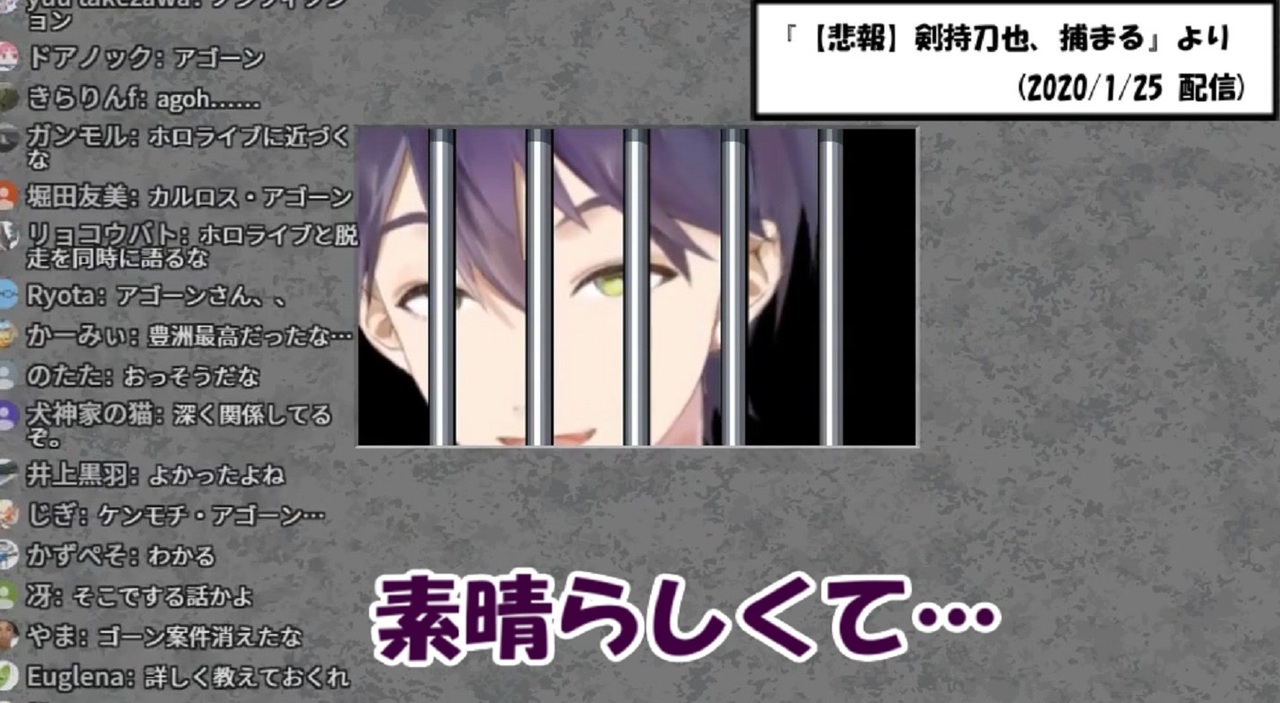 シュール<br>剣持刀也<br><a href="https://www.youtube.com/channel/UCv1fFr156jc65EMiLbaLImw?sub_confirmation=1" target="_blank" rel="noopener nofollow">https://www.youtube.com/channel/UCv1fFr156jc65EMiLbaLImw?sub_confirmation=1</a><br><a href="https://twitter.com/rei_Toya_rei" target="_blank" rel="noopener nofollow">https://twitter.com/rei_Toya_rei</a><br><br>・元動画<br>▼【悲報】剣持刀也、捕まる(2020/1/25)<br><a href="https://www.youtube.com/watch?v=L9lTd1XOpTk" target="_blank" rel="noopener nofollow">https://www.youtube.com/watch?v=L9lTd1XOpTk</a><br>▼該当箇所(9:15~)<br><a href="https://www.youtube.com/watch?v=L9lTd1XOpTk&feature=youtu.be&t=555" target="_blank" rel="noopener nofollow">https://www.youtube.com/watch?v=L9lTd1XOpTk&feature=youtu.be&t=555</a>