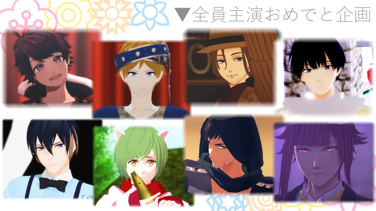<br>旗揚げ公演~第6回まで、<br>24人全員が主演を務めたことへのお祝い動画です!<br><br>全23名のMMDerが集まって合作をしてみました!<br>動画は3部構成。ここは1つ目です!<br><br>▼開始地点 主演/担当者<br><a href="#" class="seekTime" data-seekTime="00:22" onclick="seekNicoPlayer('#00:22'); return false;">#00:22</a> 咲也 / たらこ(<a href="https://www.nicovideo.jp/mylist/59697681" target="_blank" rel="noopener">mylist/59697681</a>)<br><a href="#" class="seekTime" data-seekTime="02:08" onclick="seekNicoPlayer('#02:08'); return false;">#02:08</a> 天馬 / あまるめ(<a href="https://www.nicovideo.jp/mylist/37855640" target="_blank" rel="noopener">mylist/37855640</a>)<br><a href="#" class="seekTime" data-seekTime="04:21" onclick="seekNicoPlayer('#04:21'); return false;">#04:21</a> 万里 / りぷとん(<a href="https://www.nicovideo.jp/user/18163264" target="_blank" rel="noopener">user/18163264</a>)<br><a href="#" class="seekTime" data-seekTime="06:37" onclick="seekNicoPlayer('#06:37'); return false;">#06:37</a> 紬 / らーじゅ(<a href="https://www.nicovideo.jp/mylist/61076939" target="_blank" rel="noopener">mylist/61076939</a>)<br><a href="#" class="seekTime" data-seekTime="08:38" onclick="seekNicoPlayer('#08:38'); return false;">#08:38</a> 真澄 / 結華(<a href="https://www.nicovideo.jp/mylist/47751590" target="_blank" rel="noopener">mylist/47751590</a>)<br><a href="#" class="seekTime" data-seekTime="10:43" onclick="seekNicoPlayer('#10:43'); return false;">#10:43</a> 幸 / tayu(<a href="https://www.nicovideo.jp/mylist/33887933" target="_blank" rel="noopener">mylist/33887933</a>)<br><span style="color: #000000; font-size: 13px;"> ※あんさんぶるスターズ!衣装使用<br> (1/27追記:公演衣装へ改変して使用。元モデラーさんの許可済です)</span><br><a href="#" class="seekTime" data-seekTime="13:00" onclick="seekNicoPlayer('#13:00'); return false;">#13:00</a> 臣 / 8cotton8(<a href="https://www.nicovideo.jp/mylist/59382312" target="_blank" rel="noopener">mylist/59382312</a>)<br><a href="#" class="seekTime" data-seekTime="15:15" onclick="seekNicoPlayer('#15:15'); return false;">#15:15</a> 誉 / おきゃ(<a href="https://www.nicovideo.jp/mylist/55749384" target="_blank" rel="noopener">mylist/55749384</a>)<br> ※<a href="https://www.nicovideo.jp/watch/so34711771" class="watch">so34711771</a> こちらのモーションを使用<br><a href="#" class="seekTime" data-seekTime="17:14" onclick="seekNicoPlayer('#17:14'); return false;">#17:14</a> クレジット<br><br>—―――――――――――――――――――――――――<span style="color: #000000; font-size: 13px;">―――</span><br><br>第2部 → <a href="https://www.nicovideo.jp/watch/sm36277790" class="watch">sm36277790</a><span style="color: #000000; font-size: 13px;">(1/27 1:13 公開予定)</span><br>第3部 → <a href="https://www.nicovideo.jp/watch/sm36278461" class="watch">sm36278461</a><span style="color: #000000; font-size: 13px;">(1/27 1:27 公開予定)<br><br>―――――――――――――――――――――――――――――</span>