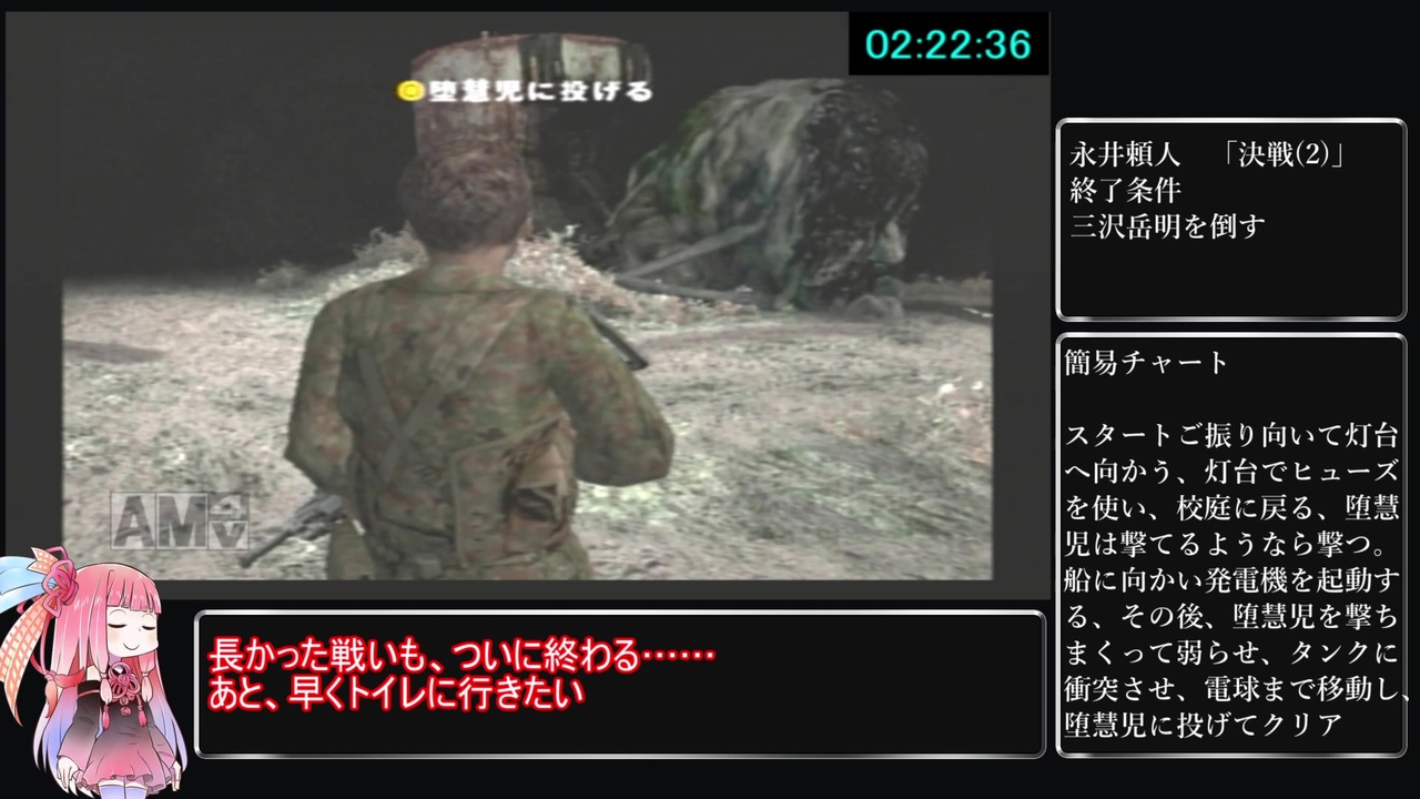 難易度normalのany%RTA(どんな形でもいいからエンディングを見るまでのタイムを競う)です。<br>基本的にBonesaw577兄貴の動画<br>(<a href="https://www.twitch.tv/videos/521191136?filter=highlights&sort=time)" target="_blank" rel="noopener nofollow">https://www.twitch.tv/videos/521191136?filter=highlights&sort=time)</a><br>を参考にしてチャートを作りました。<br>※この動画の途中で闇人に向かって叫んでるとこ、たぶん単なるロスなのでやらないようにしようね!<br><br><span style="color: #000000; font-size: 14px;">タイマースタート NEW GAME選択直後<br>タイマーストップ 最後のシナリオをクリアして、終了条件達成の文字が出た瞬間</span><br><br>SIREN2マイリスト→<a href="https://www.nicovideo.jp/mylist/67419709" target="_blank" rel="noopener">mylist/67419709</a><br>前回→<a href="https://www.nicovideo.jp/watch/sm36290650" class="watch">sm36290650</a><br>