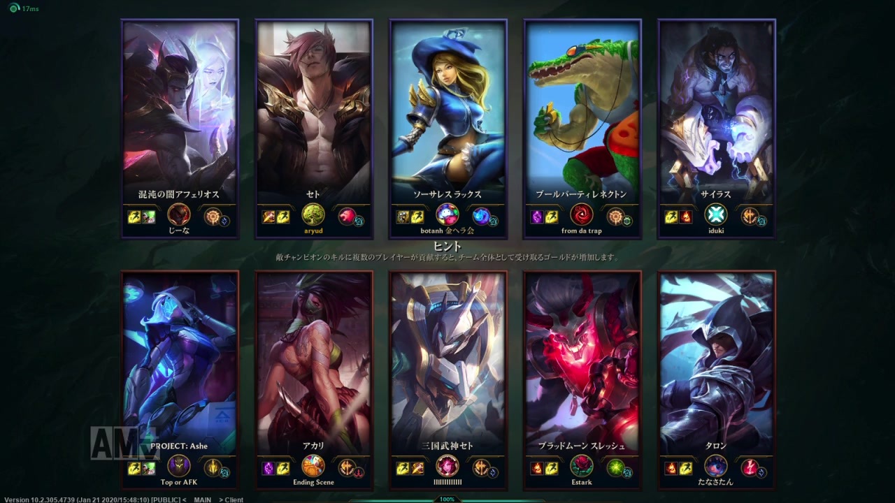 こんにちは。<br><br>セトJGにはまり中。<br>次もセトJG動画になるかもだけど許して・・。<br><br>■LoLパートナー<br>私はライアットゲームズのLoL公式パートナープログラムに参加しています。 <br>プログラムの詳細はこちらをご覧ください: <a href="https://partners.leagueoflegends.com/" target="_blank" rel="noopener nofollow">https://partners.leagueoflegends.com/</a> <br><br> 【私の投稿動画一覧】<a href="https://www.nicovideo.jp/mylist/34239707" target="_blank" rel="noopener">mylist/34239707</a><br>【ボタンさん投稿動画一覧】<a href="https://www.nicovideo.jp/mylist/55486174" target="_blank" rel="noopener">mylist/55486174</a><br>【しろまさん投稿動画一覧】<a href="https://www.nicovideo.jp/mylist/57313953" target="_blank" rel="noopener">mylist/57313953</a><br>【Twitter】<a href="https://twitter.com/aryud_lol" target="_blank" rel="noopener nofollow">https://twitter.com/aryud_lol</a><br>【ブログ】<a href="http://botanh.blog.fc2.com/" target="_blank" rel="noopener nofollow">http://botanh.blog.fc2.com/</a><br><br>【486戦目】<a href="https://www.nicovideo.jp/watch/sm36273862" class="watch">sm36273862</a> 【488戦目】<a href="https://www.nicovideo.jp/watch/sm36337079" class="watch">sm36337079</a>