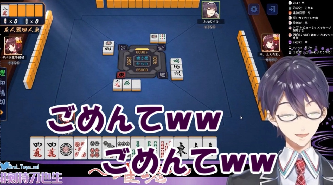 草<br>剣持刀也<br><a href="https://www.youtube.com/channel/UCv1fFr156jc65EMiLbaLImw?sub_confirmation=1" target="_blank" rel="noopener nofollow">https://www.youtube.com/channel/UCv1fFr156jc65EMiLbaLImw?sub_confirmation=1</a><br><a href="https://twitter.com/rei_Toya_rei" target="_blank" rel="noopener nofollow">https://twitter.com/rei_Toya_rei</a><br><br>・元動画<br>▼麻雀で僕に勝てるやついんの?【視聴者参加型】(2020/2/4)<br><a href="https://www.youtube.com/watch?v=uN3abwDopk0" target="_blank" rel="noopener nofollow">https://www.youtube.com/watch?v=uN3abwDopk0</a><br>▼該当箇所(1:39:25~)<br><a href="https://www.youtube.com/watch?v=uN3abwDopk0&feature=youtu.be&t=5965" target="_blank" rel="noopener nofollow">https://www.youtube.com/watch?v=uN3abwDopk0&feature=youtu.be&t=5965</a>