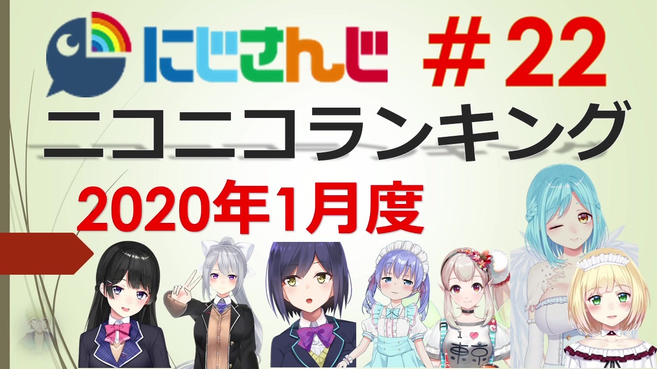 ■集計期間:2020年<span style="color: #ff0000; font-size: 18px;">1月1日</span><span style="color: #262626; font-size: 13px;">0時</span><span style="color: #262626; font-size: 16px;">~</span><span style="color: #ff0000; font-size: 18px;">1月31日</span><span style="font-size: 13px;">24時</span><br>■集計方法:再生数+(コメント数×補正値)+(マイリスト登録数×<span style="color: #ff0000;">25</span><span style="color: #262626;">)</span><br>■集計対象:タグ 「にじさんじ」がついている動画<br>──────<br>プレイリスト:<a href="https://www.nicovideo.jp/mylist/67516442" target="_blank" rel="noopener">mylist/67516442</a><br>──────<br><span style="color: #000000; font-size: 13px;">#21(12月度):</span><a href="https://www.nicovideo.jp/watch/sm36229122" class="watch">sm36229122</a><span style="color: #000000; font-size: 13px;">|<br>#22(1月度):いまここ |#23(2月度):3月上旬 |<br>年間ランキング#02:</span><a href="https://www.nicovideo.jp/watch/sm36193306" class="watch">sm36193306</a><br>──────<span style="color: #000000; font-size: 13px;"> </span><br><br>2020年1月度のランキングです。<br>このランキングでは<span style="color: #ff0000;"><u>「にじさんじ」のタグが付いている動画のみ</u></span><span style="color: #ff0000;">が集計対象となっています</span>。