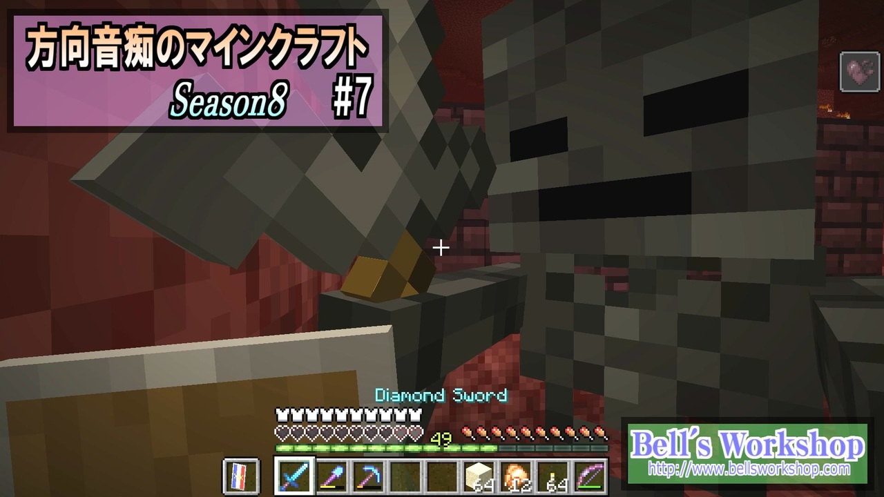 ポータルトラップ建設の前準備。何故かウィザースケルトンとの戦闘なのだ。<br>前:<a href="https://www.nicovideo.jp/watch/sm36293386" class="watch">sm36293386</a> 次:<a href="https://www.nicovideo.jp/watch/sm36333329" class="watch">sm36333329</a> マイリスト:<a href="https://www.nicovideo.jp/mylist/23976036" target="_blank" rel="noopener">mylist/23976036</a><br>※Part7裏話:<a href="http://bellsworkshop.com/season8-part7/" target="_blank" rel="noopener nofollow">http://bellsworkshop.com/season8-part7/</a><br><br>【Season8】Part1→【<a href="https://www.nicovideo.jp/watch/sm36165960" class="watch">sm36165960</a>】<br>【Season7】Part1→【<a href="https://www.nicovideo.jp/watch/sm33664690" class="watch">sm33664690</a>】<br>【Season6】Part1→【<a href="https://www.nicovideo.jp/watch/sm28495695" class="watch">sm28495695</a>】<br>【Season5】Part1→【<a href="https://www.nicovideo.jp/watch/sm22127834" class="watch">sm22127834</a>】<br>【Season4】Part1→【<a href="https://www.nicovideo.jp/watch/sm18506998" class="watch">sm18506998</a>】<br>【Season3】Part1→【<a href="https://www.nicovideo.jp/watch/sm15675589" class="watch">sm15675589</a>】<br>【Season2】Part1→【<a href="https://www.nicovideo.jp/watch/sm14580639" class="watch">sm14580639</a>】<br>【Season1】Part1→【<a href="https://www.nicovideo.jp/watch/sm13665074" class="watch">sm13665074</a>】<br><br>ブログ<br><a href="http://www.bellsworkshop.com/" target="_blank" rel="noopener nofollow">http://www.bellsworkshop.com/</a><br><br>Youtubeチャンネル<br><a href="http://www.youtube.com/user/bellsworkshop2" target="_blank" rel="noopener nofollow">http://www.youtube.com/user/bellsworkshop2</a><br><br>Music:purple planet royalty free music <a href="http://www.purple-planet.com/" target="_blank" rel="noopener nofollow">http://www.purple-planet.com/</a><br>Sound:On-Jin ~音人~ <a href="http://on-jin.com/" target="_blank" rel="noopener nofollow">http://on-jin.com/</a><br>
