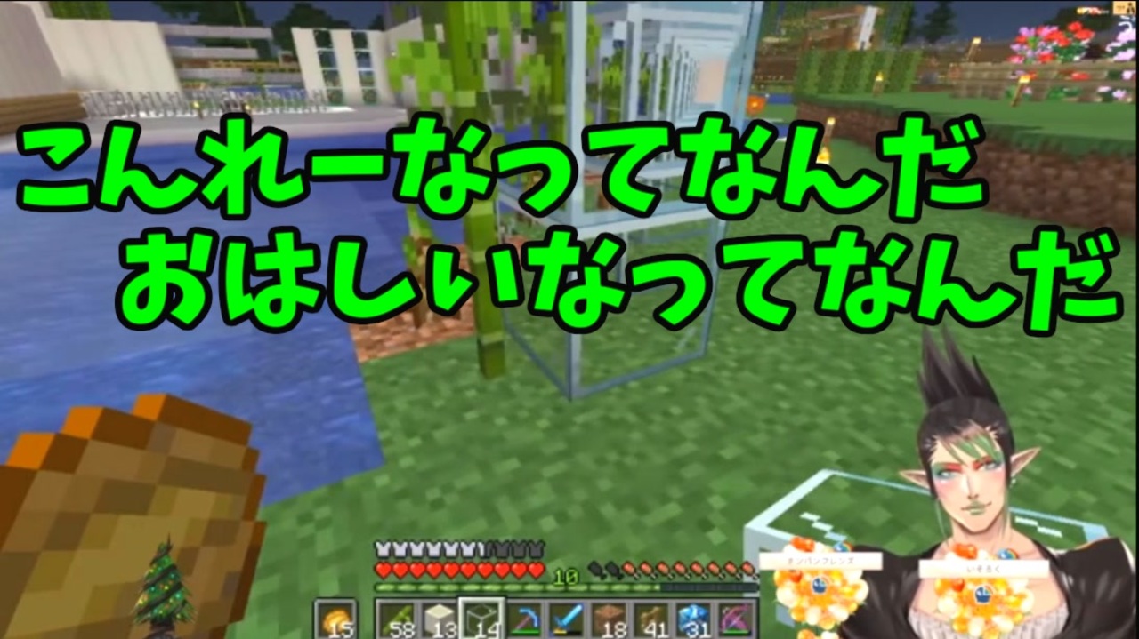 こんれーなってなんだ…?<br><br>●元動画<br>○花畑チャイカとマインクラフト我が家を完成させる今日こそ絶対本当にきっと恐らく多分<br><a href="https://www.youtube.com/watch?v=n58Sirr4vkc" target="_blank" rel="noopener nofollow">https://www.youtube.com/watch?v=n58Sirr4vkc</a><br><br>○花畑チャイカと掘りつくされたにじ鯖の中心でダイヤRTA<br><a href="https://www.youtube.com/watch?v=1sON-TmboYY" target="_blank" rel="noopener nofollow">https://www.youtube.com/watch?v=1sON-TmboYY</a><br><br>●<span style="color: #000000; font-size: 13px;">花畑チャイカ</span><br>【YouTube】<a href="https://www.youtube.com/channel/UCsFn_ueskBkMCEyzCEqAOvg" target="_blank" rel="noopener nofollow">https://www.youtube.com/channel/UCsFn_ueskBkMCEyzCEqAOvg</a><br>【Twitter】 <a href="https://twitter.com/ZulmIhP1nlMOT5y?lang=ja" target="_blank" rel="noopener nofollow">https://twitter.com/ZulmIhP1nlMOT5y?lang=ja</a><br><br>●曲<br>○beco@騒音のない世界様 - 東海道をゆく<br>【YouTube】<a href="https://www.youtube.com/channel/UC2KNOBqzElEs8TA7SR2Hm2w" target="_blank" rel="noopener nofollow">https://www.youtube.com/channel/UC2KNOBqzElEs8TA7SR2Hm2w</a><br>【ニコニコ】<a href="https://www.nicovideo.jp/user/93555972" target="_blank" rel="noopener nofollow">https://www.nicovideo.jp/user/93555972</a><br>