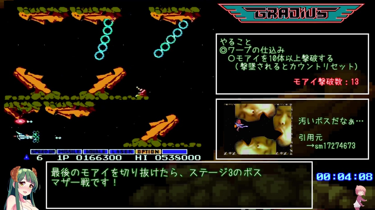 シューティングゲームは初投稿です。<br><br>2020/01/14にニコ生で達成した記録となります。<br>Newファミコン実機でのプレイ、タイマーは後乗せです。<br>計測区間:電源投入後にスタートボタン入力し操作可能になった瞬間~操作不可能になる瞬間まで<br><br><a href="https://www.nicovideo.jp/watch/sm36166351" class="watch">sm36166351</a>←まえ つぎ→<a href="https://www.nicovideo.jp/watch/sm36619525" class="watch">sm36619525</a><br><br>仮面ライダー倶楽部RTAマイリスト→ <a href="https://www.nicovideo.jp/mylist/63689913" target="_blank" rel="noopener">mylist/63689913</a> <br>ワタル外伝RTAマイリスト → <a href="https://www.nicovideo.jp/mylist/62171114" target="_blank" rel="noopener">mylist/62171114</a> <br><span style="font-size: 13px;">鬼太郎2RTAマイリスト→ <a href="https://www.nicovideo.jp/mylist/65660527" target="_blank" rel="noopener">mylist/65660527</a></span><br><br>Twitter→xlAYVqnkRHIuJ8W<br>生放送やってます→co3744974<br><br>2020/06 /13追記さっき確認したら世界4位に落ちてました。つよい(確信)