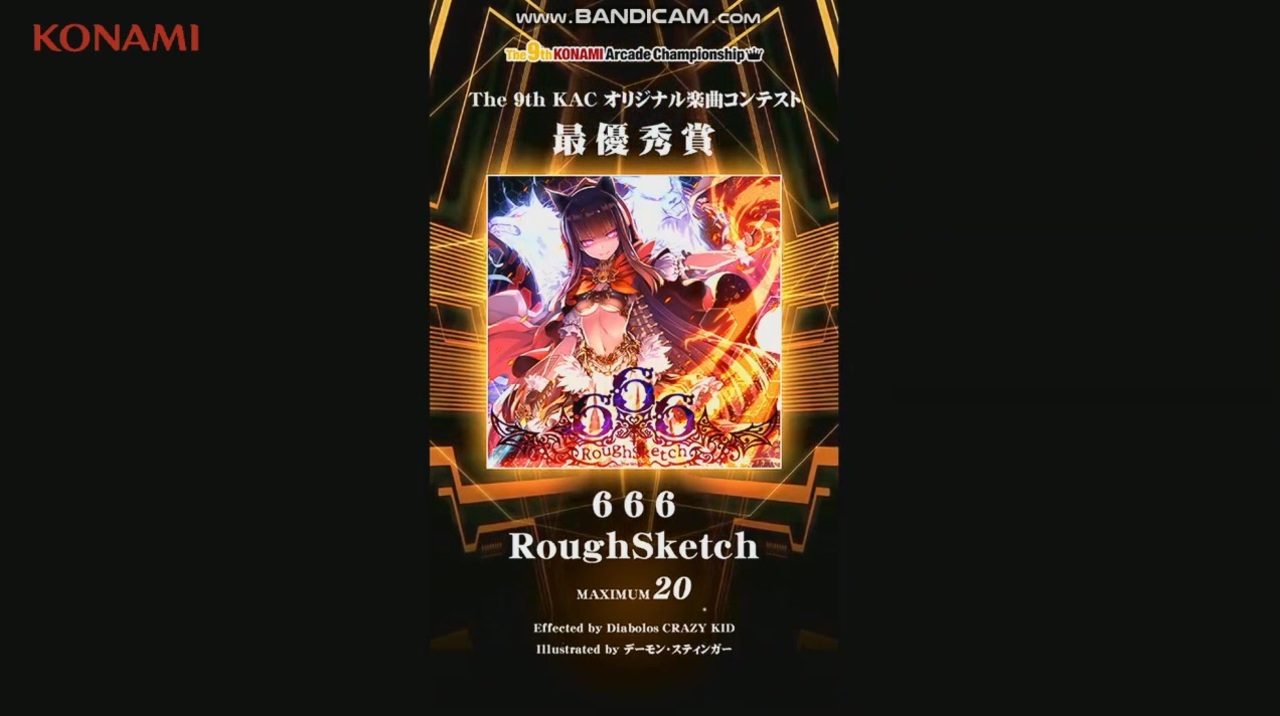 <span style="font-size: 11pt;">SDVX 9th KAC決勝戦 The 9th KACオリジナル楽曲コンテスト最優秀楽曲『666』<br>Artist:Rough Sketch</span><br><br>