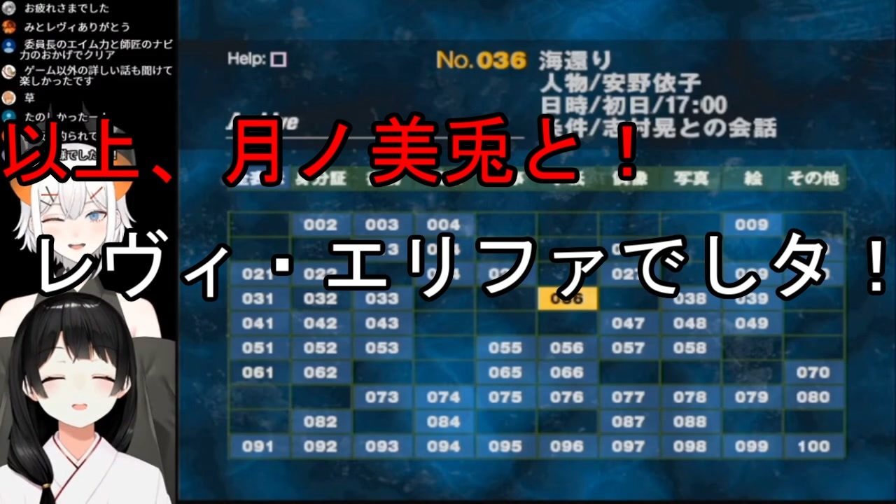結末は自分たちの目で確かめてくれ!!<br><br><br>SIRENで一番好きなのはこのムービー<br>次に好きなのはバミューダトライアングルです<br><br>にじさんじSIREN動画<br>レヴィちゃん→(<span style="color: #000000; font-size: 13px;"><a href="https://www.nicovideo.jp/watch/sm35665873" class="watch">sm35665873</a>)(<a href="https://www.nicovideo.jp/watch/sm35682729" class="watch">sm35682729</a>)</span>(<span style="color: #000000; font-size: 13px;"><a href="https://www.nicovideo.jp/watch/sm36193582" class="watch">sm36193582</a>)</span><br>師弟動画→(<a href="https://www.nicovideo.jp/watch/sm36297305" class="watch">sm36297305</a>)<br><br>元動画<br>【SIREN】田舎で遊ぼウ♬#5【にじさんじ/ レヴィ・エリファ】<br><a href="https://www.youtube.com/watch?v=qOFQ0q9gQE8&t" target="_blank" rel="noopener nofollow">https://www.youtube.com/watch?v=qOFQ0q9gQE8&t</a><br>【SIREN初見/最終回】最恐ジャパニーズホラゲーのラストを見届ける【にじさんじ】<br><a href="https://www.youtube.com/watch?v=bm-CI3eWdvY&t" target="_blank" rel="noopener nofollow">https://www.youtube.com/watch?v=bm-CI3eWdvY&t</a><br>天開司のSIREN クリアまでぶっ通し生配信 第2部<br><a href="https://www.youtube.com/watch?v=pEsJG6D9wxU&list=PLl70PKbRMTycUu2PSiUs1EXDr2GDHNnC6&index=3&t" target="_blank" rel="noopener nofollow">https://www.youtube.com/watch?v=pEsJG6D9wxU&list=PLl70PKbRMTycUu2PSiUs1EXDr2GDHNnC6&index=3&t</a><br><br>月ノ美兎<br><span style="font-size: 14px;">You tube</span><br><a href="https://www.youtube.com/channel/UCD-miitqNY3nyukJ4Fnf4_A" target="_blank" rel="noopener nofollow">https://www.youtube.com/channel/UCD-miitqNY3nyukJ4Fnf4_A</a><br><br>レヴィ・エリファ<br><span style="color: #000000; font-size: 14px;">You tube</span><br><a href="https://www.youtube.com/channel/UCtnO2N4kPTXmyvedjGWdx3Q" target="_blank" rel="noopener nofollow">https://www.youtube.com/channel/UCtnO2N4kPTXmyvedjGWdx3Q</a><br><br>天開司<br><span style="color: #000000; font-size: 14px;">You tube</span><br><a href="https://www.youtube.com/channel/UCZYyhgoV314CM14zBD6vd4A" target="_blank" rel="noopener nofollow">https://www.youtube.com/channel/UCZYyhgoV314CM14zBD6vd4A</a><br><br><span style="font-size: 13px;">You tubeで見たい方はコチラ</span><br><a href="https://youtu.be/G8fA3-ljIE4" target="_blank" rel="noopener nofollow">https://youtu.be/G8fA3-ljIE4</a><br>