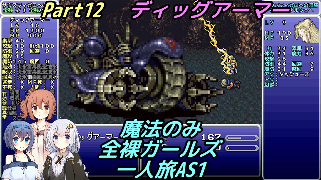 そのドリルで私を好きなようにして<br><br>・次回 … Part13 <a href="https://www.nicovideo.jp/watch/sm36553393" class="watch">sm36553393</a><br>・前回 … Part11 <a href="https://www.nicovideo.jp/watch/sm36234865" class="watch">sm36234865</a><br><br>・Youtube版 … <a href="https://youtu.be/vcxXEfwh1C8" target="_blank" rel="noopener nofollow">https://youtu.be/vcxXEfwh1C8</a><br>・字幕のみ … <a href="https://youtu.be/bRbvY0dxE3s" target="_blank" rel="noopener nofollow">https://youtu.be/bRbvY0dxE3s</a><br><br>【縛り内容】<br>1、魔法のみ<br>2、全裸(魔石はあり)<br>3、ガールズ<br>4、一人旅<br>5、アクティブ バトルスピード1 メッセージスピード1 詳細:<a href="https://www.nicovideo.jp/watch/sm34595412" class="watch">sm34595412</a><br>6、逃げられない!!表示の連射禁止<br>7、ボスの即死は禁止<br>8、宝物は全て集める<br>9、不具合やバグは不可<br>10、可能な限り低レベル<br>11、コマンド短縮やカーソル記憶しない<br>12、セーブ可能な場所でのみアイテム可<br>13、一部ストーリー上の編成でやむを得ない場合は最低限<br /><br>ふよふよしているの<br>絵:横沢さわらさん VOICEVOX:WhiteCUL<br><br>【シリーズ】<br>くうねるきゃんぷ … <a href="https://www.nicovideo.jp/series/516069" target="_blank" rel="noopener">series/516069</a><br>お写んぽ! … <a href="https://www.nicovideo.jp/series/435756" target="_blank" rel="noopener">series/435756</a><br>様子がおかしい! … <a href="https://www.nicovideo.jp/series/418875" target="_blank" rel="noopener">series/418875</a><br>FF7 魔法マテリアのみ初期防具ガールズ一人旅ASM … <a href="https://www.nicovideo.jp/series/438696" target="_blank" rel="noopener">series/438696</a><br>きんかつ!V-STROM1050XT … <a href="https://www.nicovideo.jp/series/144466" target="_blank" rel="noopener">series/144466</a><br>FF6 魔法のみ全裸ガールズ一人旅AS1 … <a href="https://www.nicovideo.jp/series/9438" target="_blank" rel="noopener">series/9438</a><br>おバイク!GLADIUS400 ABS … <a href="https://www.nicovideo.jp/series/68579" target="_blank" rel="noopener">series/68579</a><br>FF5 魔法のみ全裸一人旅AS1 … <a href="https://www.nicovideo.jp/series/9432" target="_blank" rel="noopener">series/9432</a><br>DQ3 呪文のみ全裸一人旅 … <a href="https://www.nicovideo.jp/series/9416" target="_blank" rel="noopener">series/9416</a><br>DQ2 ムーンブルクの王女一人旅 … <a href="https://www.nicovideo.jp/series/9414" target="_blank" rel="noopener">series/9414</a><br>DQ1 全裸 … <a href="https://www.nicovideo.jp/series/9412" target="_blank" rel="noopener">series/9412</a><br>FE 紋章の謎 天馬騎士単騎 第2部 英雄戦争 … <a href="https://www.nicovideo.jp/series/9404" target="_blank" rel="noopener">series/9404</a><br>FE 紋章の謎 天馬騎士単騎 第1部 暗黒戦争 … <a href="https://www.nicovideo.jp/series/9401" target="_blank" rel="noopener">series/9401</a><br>聖剣2 全裸プリム一人旅 武器Lv1など … <a href="https://www.nicovideo.jp/series/9396" target="_blank" rel="noopener">series/9396</a><br>ロマサガ2 魔術士不得意武器のみ … <a href="https://www.nicovideo.jp/series/9388" target="_blank" rel="noopener">series/9388</a><br>ロマサガ1 術法のみ一人旅で各イベント攻略 … <a href="https://www.nicovideo.jp/series/9386" target="_blank" rel="noopener">series/9386</a><br><br>SNSとか色々なリンク … <a href="https://lit.link/Unaa" target="_blank" rel="noopener nofollow">https://lit.link/Unaa</a>