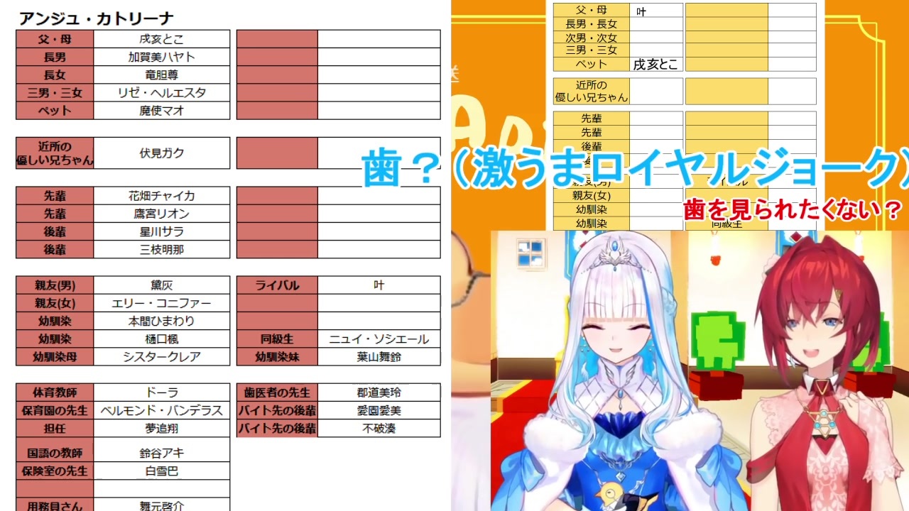 リゼアンはガチ。すれ違うわけねえよなあ!?<br><br>大元:<a href="https://www.youtube.com/watch?v=wJpBBvZnaeY&t=1160s" target="_blank" rel="noopener nofollow">https://www.youtube.com/watch?v=wJpBBvZnaeY&t=1160s</a> <br> (にじさんじ家系図を作ろう。妄想!もしもライバーでお母さんにするなら…?)<br><br>延長戦部分:<a href="https://www.youtube.com/watch?v=qQvKq3_MFyY&t=1s" target="_blank" rel="noopener nofollow">https://www.youtube.com/watch?v=qQvKq3_MFyY&t=1s</a><br> (深夜のリゼアン※雑談枠)<br>