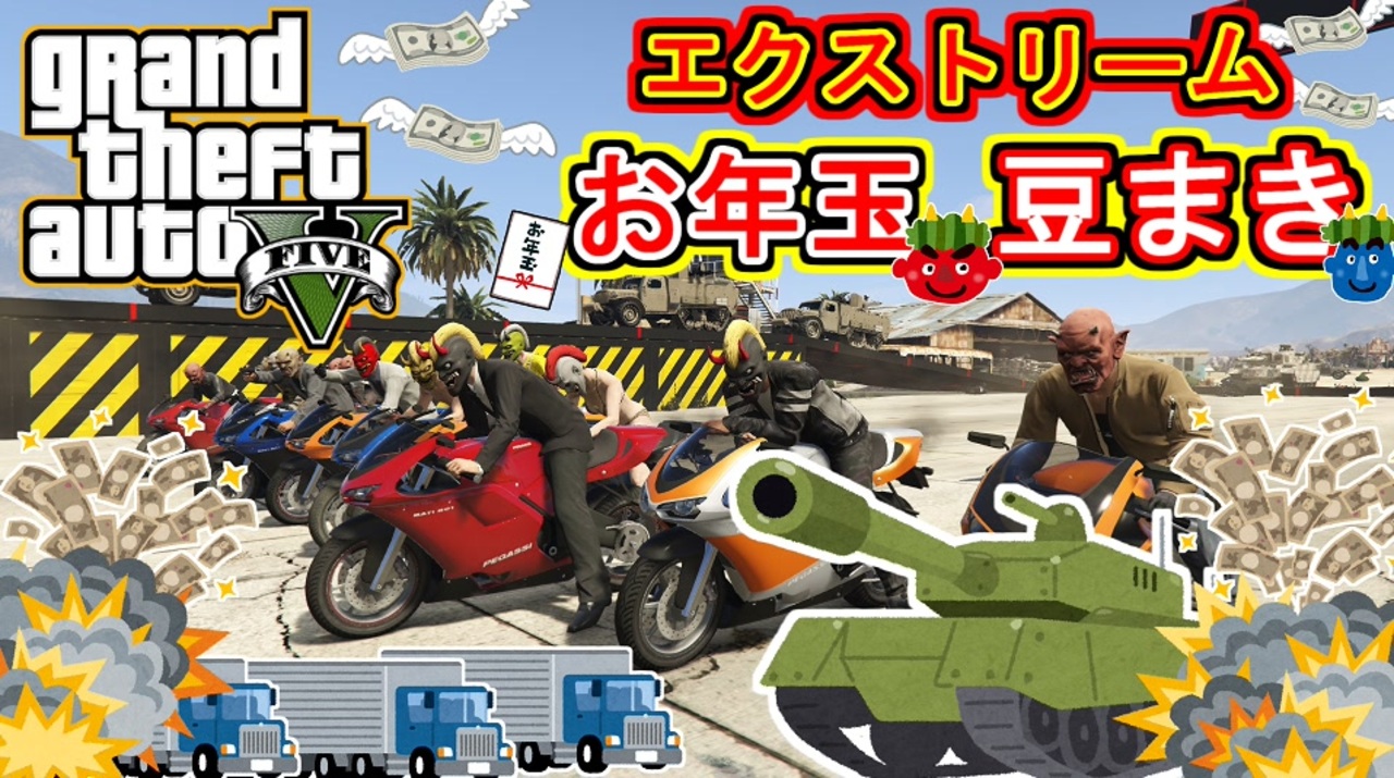 You Tubeフルボイス高画質版→<a href="https://www.youtube.com/watch?v=cCgJuyFOT5k" target="_blank" rel="noopener nofollow">https://www.youtube.com/watch?v=cCgJuyFOT5k</a><br><br>YouTubeチャンネルも登録お願いします! <a href="https://www.youtube.com/channel/UCs_0n9y_qw6fAniS4mQ7q8w" target="_blank" rel="noopener nofollow">https://www.youtube.com/channel/UCs_0n9y_qw6fAniS4mQ7q8w</a><br>Twitter ご意見・感想いつでもお待ちしております!<br><a href="https://twitter.com/naoreisen" target="_blank" rel="noopener nofollow">https://twitter.com/naoreisen</a><br><br>正月ネタが残っていたのと、節分ネタを取り入れた<br>GTAらしい動画となっております<br><br>お借りしたBGM<br>ぺんぺん君様 <a href="https://www.nicovideo.jp/user/93911302" target="_blank" rel="noopener nofollow">https://www.nicovideo.jp/user/93911302</a><br><br>撮影協力<br>生放送リスナー、クルーメンバーの皆様<br>映像提供<br>KENさん sagisagiさん カズさん フィルクさん ほりゆーさん<br>偽竜さん パグどっくさん 蜃気楼さん<br><br>次回 <br>そのうち<br><br>前回 手配度MAXだけど巨大風車を避けながら出勤する<br><a href="https://www.nicovideo.jp/watch/sm36297637" class="watch">sm36297637</a><br><br>カオステニス<br><a href="https://www.nicovideo.jp/watch/sm35368685" class="watch">sm35368685</a><br><br>手配度MAXシリーズ <a href="https://www.nicovideo.jp/mylist/18374381" target="_blank" rel="noopener">mylist/18374381</a> <br>ぐらせフレンズ新作 <a href="https://www.nicovideo.jp/watch/sm31664405" class="watch">sm31664405</a><br>カオスモードシリーズ新作 <a href="https://www.nicovideo.jp/watch/sm28786135" class="watch">sm28786135</a> <br>クルー2 <a href="http://ja.socialclub.rockstargames.com/crew/bsaa-suwa2" target="_blank" rel="noopener nofollow">http://ja.socialclub.rockstargames.com/crew/bsaa-suwa2</a><br>生放送 co1486560<br>
