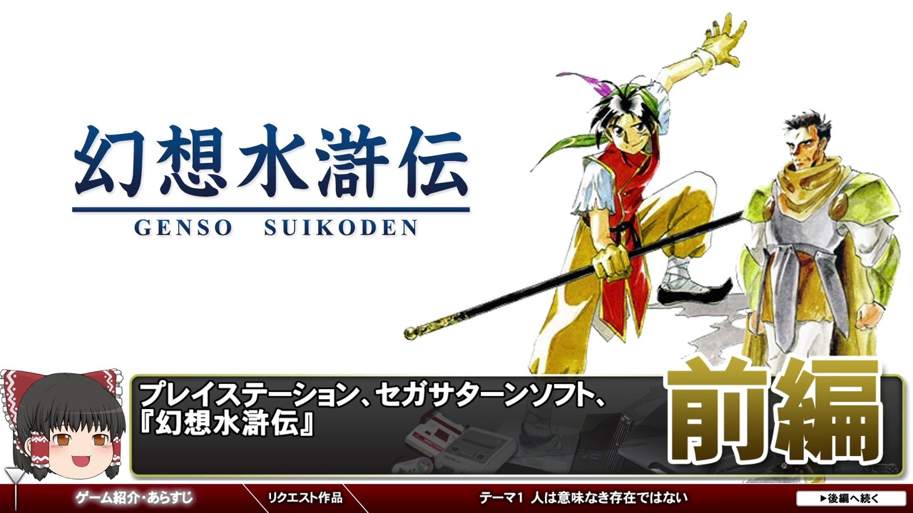 過去動画を宣伝して下さった皆さん、ありがとうございましたm(__)m<br>毎回ひとつのゲームを取り上げ、3つのテーマから解説&考察します。<br>【前編】は毎月1日・15日更新、【後編】は制作状況に応じて更新致します。<br><br><span style="color: #ff0000;"><strong>※お詫びと訂正<br>動画のなかで東野美紀さんの、「とうの」さんと読んでいますが、<br>正しくは「ひがしの」さんです。大変失礼いたしましたm(__)m</strong></span><br><br>■中編:<a href="https://www.nicovideo.jp/watch/sm36410370" class="watch">sm36410370</a><br>■後編:<a href="https://www.nicovideo.jp/watch/sm36416067" class="watch">sm36416067</a><br><br>■youtubeはこちら <a href="https://youtu.be/Ol9UNReyyfg" target="_blank" rel="noopener nofollow">https://youtu.be/Ol9UNReyyfg</a><br>■告知用のツイッター <a href="https://twitter.com/gameyawa" target="_blank" rel="noopener nofollow">https://twitter.com/gameyawa</a><br><br><span style="color: #000000; font-size: 13px;">■第69回「デトロイト:ビカムヒューマン」</span><br><span style="color: #006699; font-size: 14px;"><a href="https://www.nicovideo.jp/watch/sm36305390" class="watch">sm36305390</a></span><span style="color: #000000; font-size: 13px;">(前編)</span><span style="color: #006699; font-size: 14px;"><a href="https://www.nicovideo.jp/watch/sm36328068" class="watch">sm36328068</a></span><span style="color: #000000; font-size: 13px;">(中編)</span><span style="color: #006699; font-size: 14px;"><a href="https://www.nicovideo.jp/watch/sm36337496" class="watch">sm36337496</a></span><span style="color: #000000; font-size: 13px;">(後編) <br><br>■第71回「</span>ワンダープロジェクトJ」前編:<a href="https://www.nicovideo.jp/watch/sm36443184" class="watch">sm36443184</a> 後編:<a href="https://www.nicovideo.jp/watch/sm36478654" class="watch">sm36478654</a><br><br>■ゲーム夜話マイリスト <a href="https://www.nicovideo.jp/mylist/56973971" target="_blank" rel="noopener">mylist/56973971</a><br><span style="color: #000000; font-size: 13px;">■ゲーム夜話特別編マイリスト <a href="https://www.nicovideo.jp/mylist/65104419" target="_blank" rel="noopener">mylist/65104419</a></span>