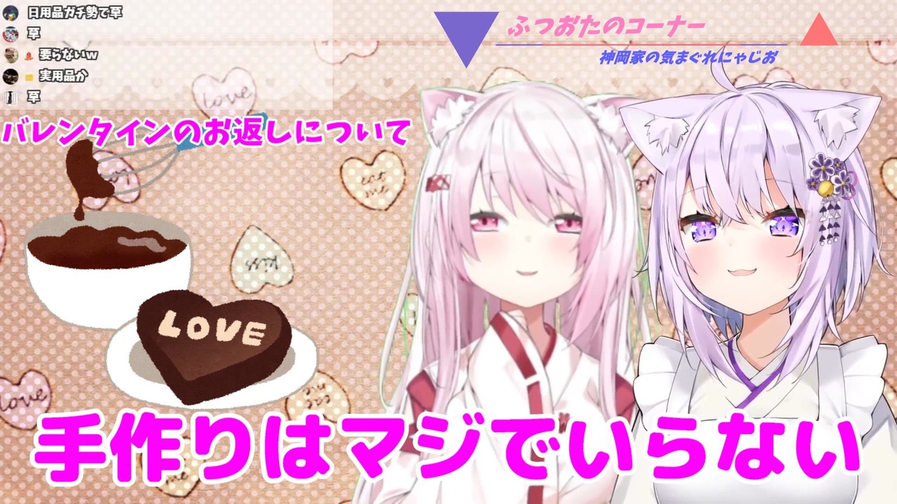 バレンタインデー(英: Valentine's Day)、または、聖バレンタインデー(セイントバレンタインデー、英: St. Valentine's Day)は、2月14日に祝われ、世界各地でカップルの愛の誓いの日とされる。<br>元々269年にローマ皇帝の迫害下で殉教した聖ウァレンティヌス(テルニのバレンタイン)に由来する記念日だと、主に西方教会の広がる地域において、かつて伝えられていた。<br><br><br>しぃしぃ<a href="https://www.youtube.com/channel/UC_4tXjqecqox5Uc05ncxpxg" target="_blank" rel="noopener nofollow">https://www.youtube.com/channel/UC_4tXjqecqox5Uc05ncxpxg</a><br>おかゆん<a href="https://www.youtube.com/channel/UCvaTdHTWBGv3MKj3KVqJVCw" target="_blank" rel="noopener nofollow">https://www.youtube.com/channel/UCvaTdHTWBGv3MKj3KVqJVCw</a><br><br>【 #神岡家 】神岡家の気まぐれにゃじお #8【椎名唯華と猫又おかゆ】<br><a href="https://www.youtube.com/watch?v=Od7ldb595QM" target="_blank" rel="noopener nofollow">https://www.youtube.com/watch?v=Od7ldb595QM</a>