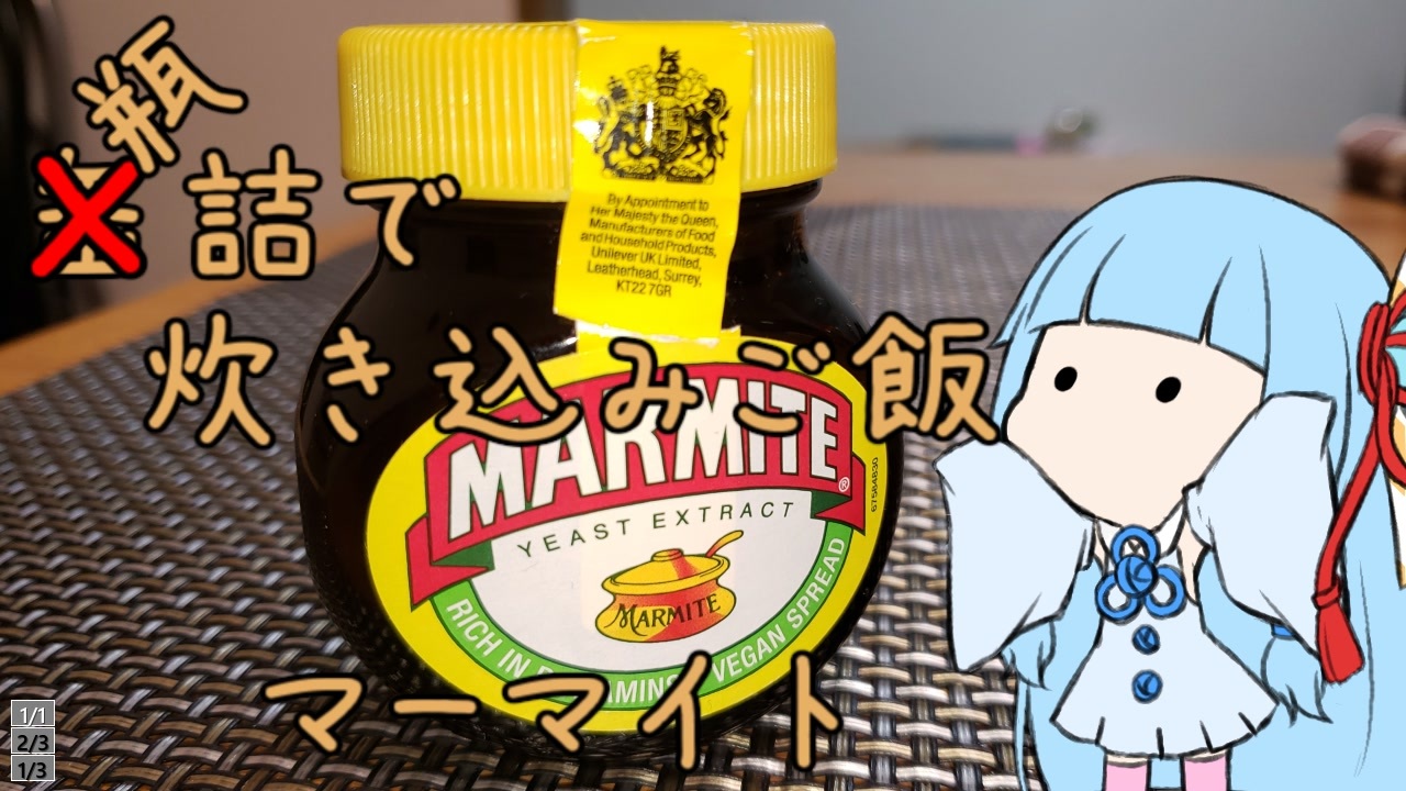 <span style="color: #434343; font-size: 18px;">匂いが凄い</span><br><br><span style="color: #ff0000; font-size: 18px;">2/17追記<br>食べられるとは言ったが、誰も美味しいとは言っていない<br>2/18追記<br>シュールストレミングは絶対やらないので差し入れしないでください。<br>2/19追記<br>100再生ごとのにマーマイトを購入する企画は鱸憂鬱様は〆られました。<br>1個いただいて22個お返しできました。</span><br><br><br><br><span style="color: #434343; font-size: 18px;">マーマイトを差し入れして下さった鱸憂鬱様<br>動画へのリンク →<a href="https://www.nicovideo.jp/watch/sm35173962" class="watch">sm35173962</a>(1万再生で締切との事)<br>最新動画へのリンク →<a href="https://www.nicovideo.jp/watch/sm36387250" class="watch">sm36387250</a></span><br><br><br><br>お値段:800円程度<br><br><span style="color: #434343; font-size: 18px;">前の動画:</span><span style="font-size: 18px;"><a href="https://www.nicovideo.jp/watch/sm36368510" class="watch">sm36368510</a></span><br><span style="color: #434343; font-size: 18px;">次の動画:</span><span style="font-size: 18px;"><a href="https://www.nicovideo.jp/watch/sm36416471" class="watch">sm36416471</a></span><br><span style="color: #434343; font-size: 18px;">東北きりかんPART1リンク:<a href="https://www.nicovideo.jp/watch/sm36145082" class="watch">sm36145082</a><br>東北きりかんマイリスト:<a href="https://www.nicovideo.jp/mylist/67288421" target="_blank" rel="noopener">mylist/67288421</a><br>Twitter :<a href="https://twitter.com/eIementalsword" target="_blank" rel="noopener nofollow">https://twitter.com/eIementalsword</a><br>ニコニコマイページ:/<a href="https://www.nicovideo.jp/user/5987343" target="_blank" rel="noopener">user/5987343</a></span>
