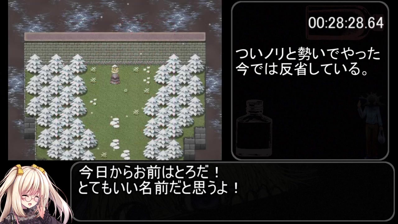 BLACKSOULSII -愛しき貴方へ贈る不思議の国-/イニミニマニモ? Ver3.3<br><br><span style="color: #ff0000; font-size: 18px;">ご視聴の注意<br>BLACKSOULSⅡのネタバレがあります<br>GENDクリア後の視聴を推奨いたします。</span><br><br>計測区間 NEW GAME選択から G END表示まで<br><br>レギュ概要<br>GEND達成かつ童話をすべて回収すること。<br><br>次:<a href="https://www.nicovideo.jp/watch/sm36664109" class="watch">sm36664109</a><br><br>地獄で逢うたな、宿敵よ<br><br>先駆者様 <a href="https://www.nicovideo.jp/watch/sm36318389" class="watch">sm36318389</a><br><br><br>追記:なんか動画見直してみたら、一部エンコードがおかしかったのか<br>秒数の進み方がおかしい箇所があるので、近いうちに無編集版も投げておきます。<br>動画のエンコードで中間ファイルのfpsが29.97になったのが原因っぽい…<br>こっから先も起きてそうで怖いんだけど、どうしようこれ…<br><br><br>RTA動画マイリスト<br>BLACKSOULSⅡ<a href="https://www.nicovideo.jp/mylist/63878502" target="_blank" rel="noopener">mylist/63878502</a><br>BLACKSOULS <a href="https://www.nicovideo.jp/mylist/59887561" target="_blank" rel="noopener">mylist/59887561</a><br><span style="color: #262626; font-size: 13px;">もんぱら<a href="https://www.nicovideo.jp/mylist/62081897" target="_blank" rel="noopener">mylist/62081897</a><br>その他<a href="https://www.nicovideo.jp/mylist/63112367" target="_blank" rel="noopener">mylist/63112367</a></span><br><br>使用素材: シアンのゆりかご様