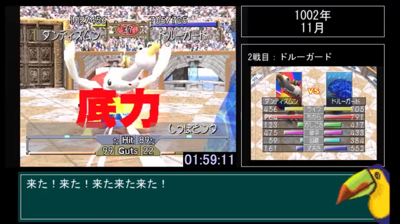 最大の敵は尿意とゲーム機でした<br><span style="color: #000000; font-size: 13px;"><a href="https://www.nicovideo.jp/watch/sm36371107" class="watch">sm36371107</a></span><span style="font-size: 13px;"> ≪前|<a href="https://www.nicovideo.jp/mylist/66892364" target="_blank" rel="noopener">mylist/66892364</a>|次≫ <a href="https://www.nicovideo.jp/watch/sm36434660" class="watch">sm36434660</a></span><br><br>★ 本シリーズのPart1-1:<a href="https://www.nicovideo.jp/watch/sm35940916" class="watch">sm35940916</a><br><br><概要><br>PSゲーム「モンスターファーム2」のRTAです。<br>(計測区間:<span style="color: #000000; font-size: 14px;">はじめから→殿堂入りまで</span>)<br><br>Twtitter:<a href="https://twitter.com/niconicojoytori" target="_blank" rel="noopener nofollow">https://twitter.com/niconicojoytori</a><br>ジョイ(鳥)@モンスターファーム@niconicojoytori